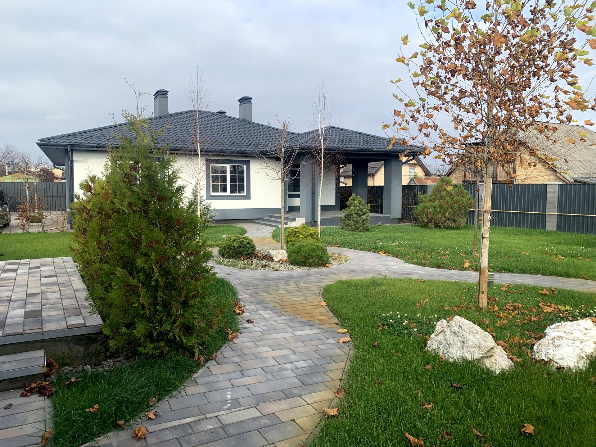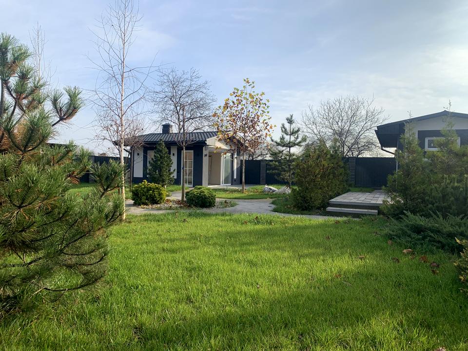 Ділянка будинку 10 соток, правильної форми. Ландшафтний дизайн, автополив, вимощені доріжки. Зелені насадження: дерева, ялинки, квіти. На території побудована альтанка яка повністю відкривається. В альтанці є опалення (тепла підлога водяна), електрика, каналізація, вода. Поштукатурена, залита стяжка. В зимку чудове місце для барбекю та тусовок з друзями. В літку можна відкрити всі панорамні вікна і буде відкрита альтанка. Територія обнесена парканом, електро ворота. Парко місце на декілька машин. Також на території збудовано хоз приміщення для зберігання інструментів та садового приладдя.