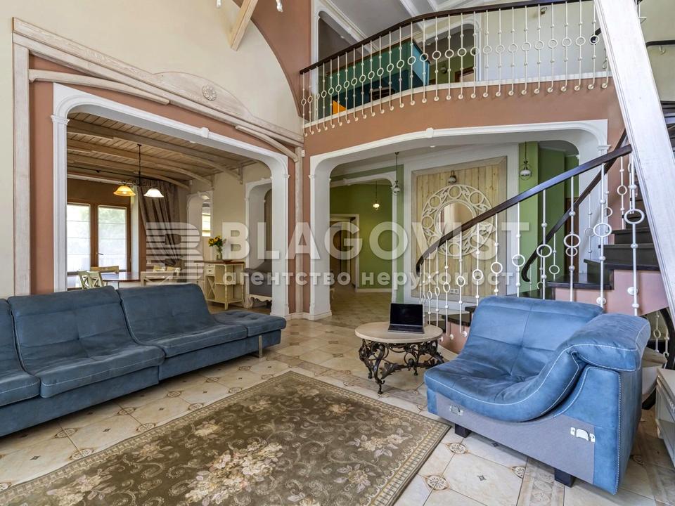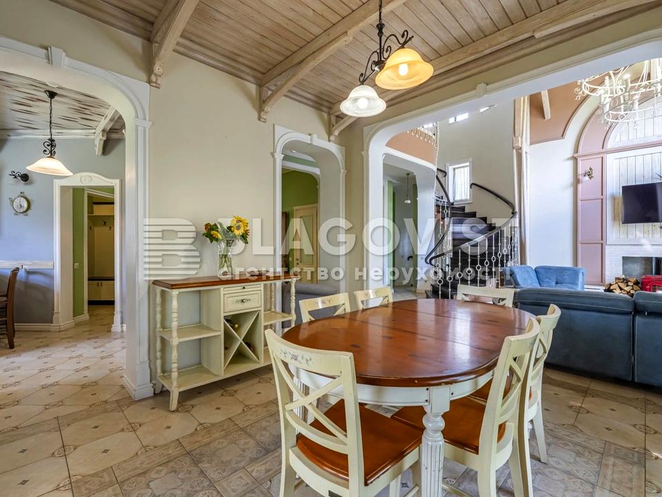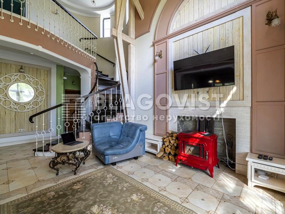 В будинку 4 спальні кімнати, вітальня з каміном, кухня-їдальня, зал з виходом на терасу, цокольний поверх з кімнатами, дизайнерський проект.