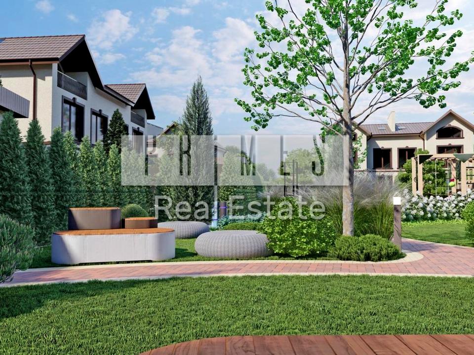 Благоустрій території входитиме в ціну будинку та буде виконаний чітко за дизайн-проектом як у презентації. Поруч біля містечка знаходиться ліс та водойма.
