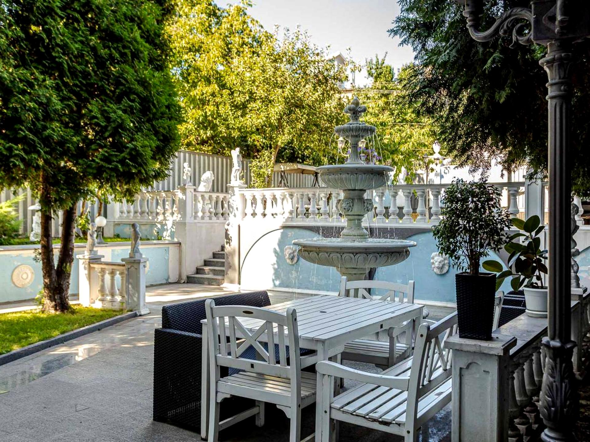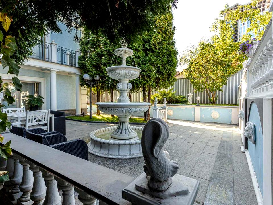 А ТАКЖЕ: индивидуальное газовое отопление, городской водопровод и канализация, отдельный домик охраны, видеонаблюдение всего периметра, деревянный домик с барбекю, подсобные помещения, вольер, благоустроенный участок, гранитная плитка, скульптуры, фонтан, балюстрады, деревья, газоны, сквозной двор, выход на две улицы, автоматические ворота.
