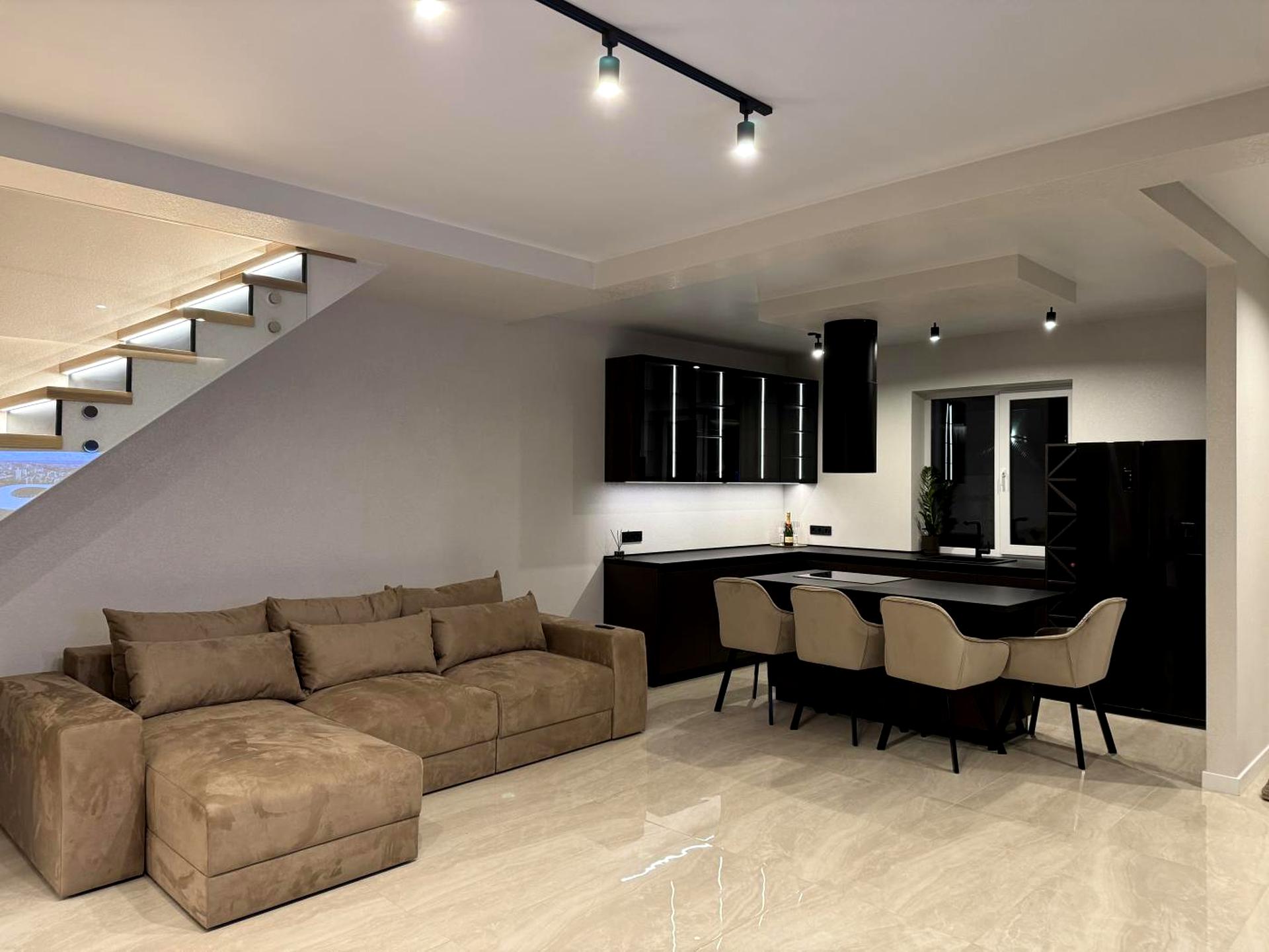 Будинок укомплектований технікою та меблями: камін, 4 кондиціонери, пральна та посудомийна машини, мікрохвильова піч, духова шафа, холодильник, телевізори, зручний диван, шафа-купе, комфортні ліжка та гардеробна.