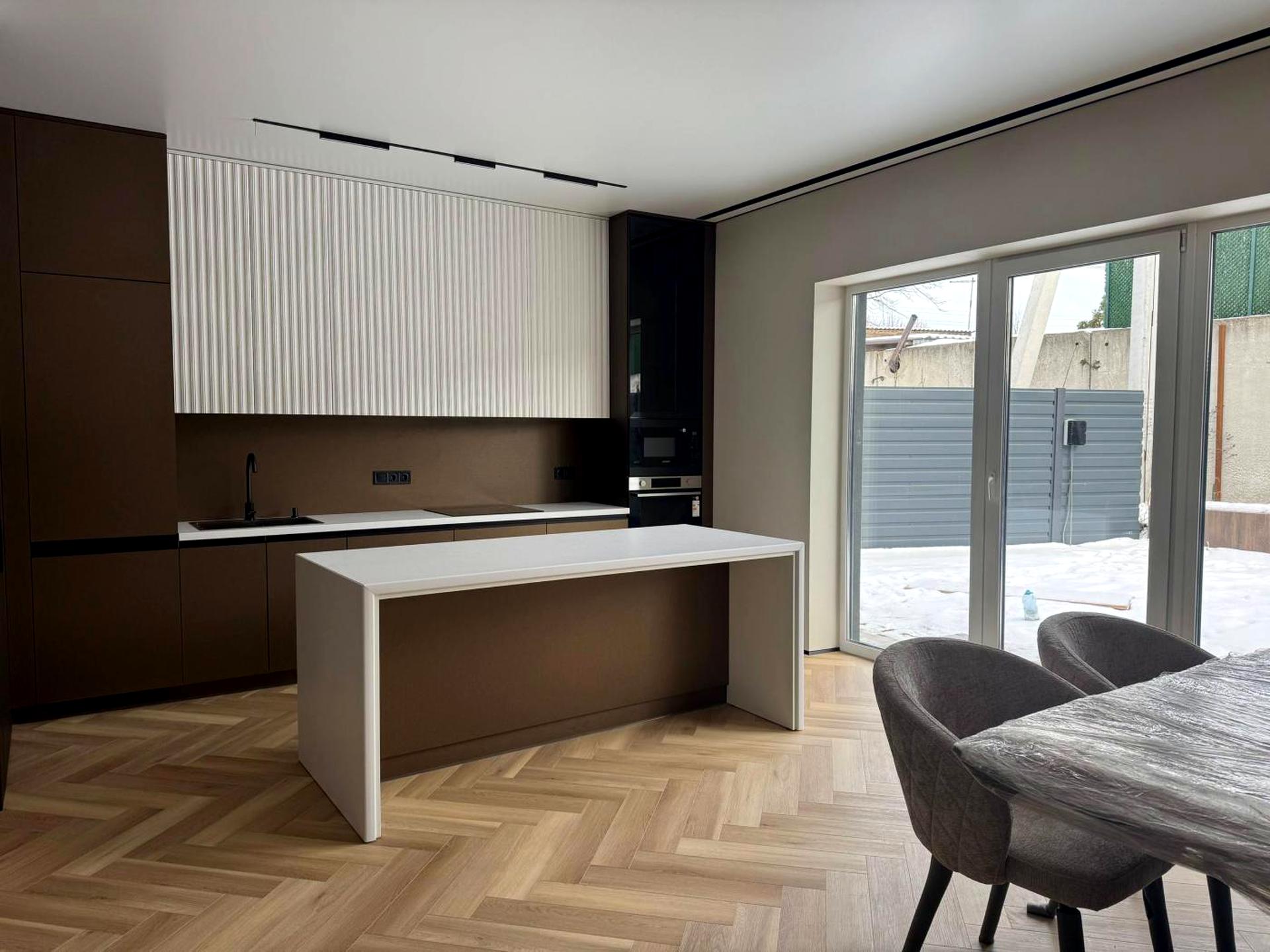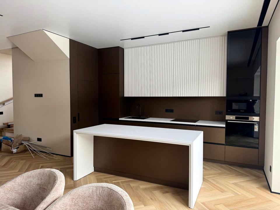 - кухня з технікою та островом