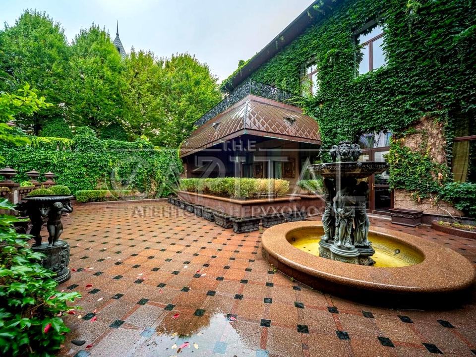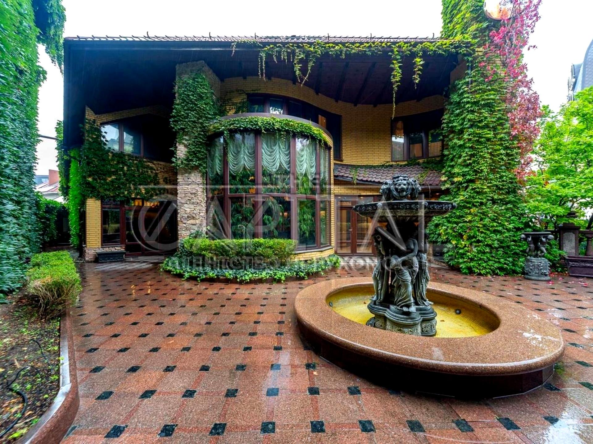 9 спалень з власними санвузлами та гардеробними, камінна зала, приватний кінозал, зимовий сад, басейн у дворі, фонтан, тераса, ландшафтний парк. Мармур, натуральний паркет, італійські брендові меблі, кришталеві люстри — все під ключ, без компромісів.