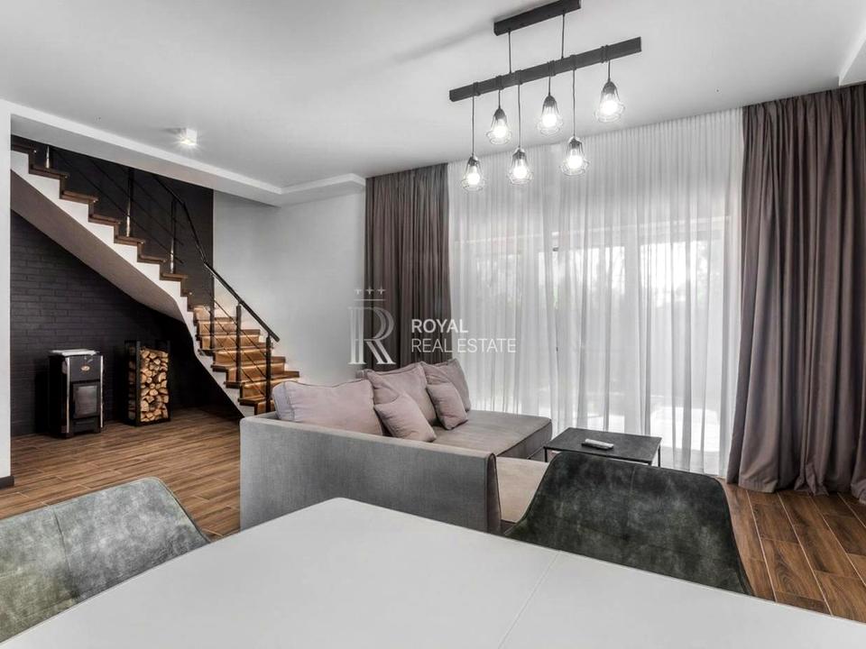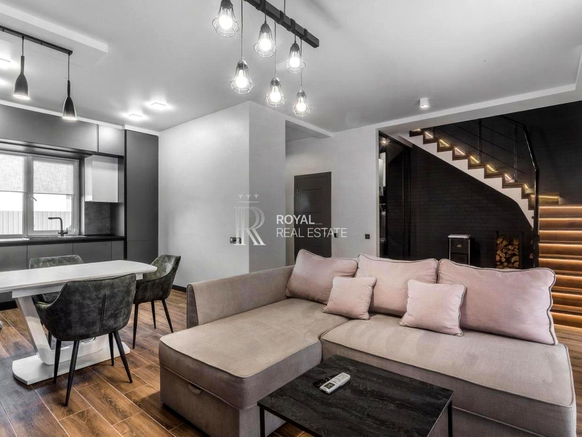Дуплекс, 2 этажа, 3 комнаты. Материал стен – монолитно-бетонный, фундамент дома – железобетон, материал перекрытий – монолитный железобетон. Подъезд к дому – асфальт. Площадь участка 4 сотки. Высота потолков 3.5 метра. Покрытие полов: покрытие полов - плитка. В доме нет балконов. Тип кухни - кухня-студия. Нет подвала. В доме есть Телевизор, Подогрев полов, Камин, Кондиционер, Стиральная машина, Душевая кабина, Ванна, Джакузи, Холодильник, Микроволновка, Посудомойная машина, Сигнализация, Автополив, Газон, Зона мангала. Дом построен в 2019 году. Своя канализация. Общее состояние дома - С ремонтом. Газа нет. Холодная вода - скважина. Горячая вода - электрический бойлер. Отопление котел электрический. Количество санузлов: 2. Тип автономной электроэнергии: генератор. Интернет оптоволоконный. Работает без света - вода, отопление, интернет, резервное питание (акумуляторы/генератор). Количество паркомест: 2. Кухонная плита электрическая. Количество спален: 2. Комиссия за услуги 5 %