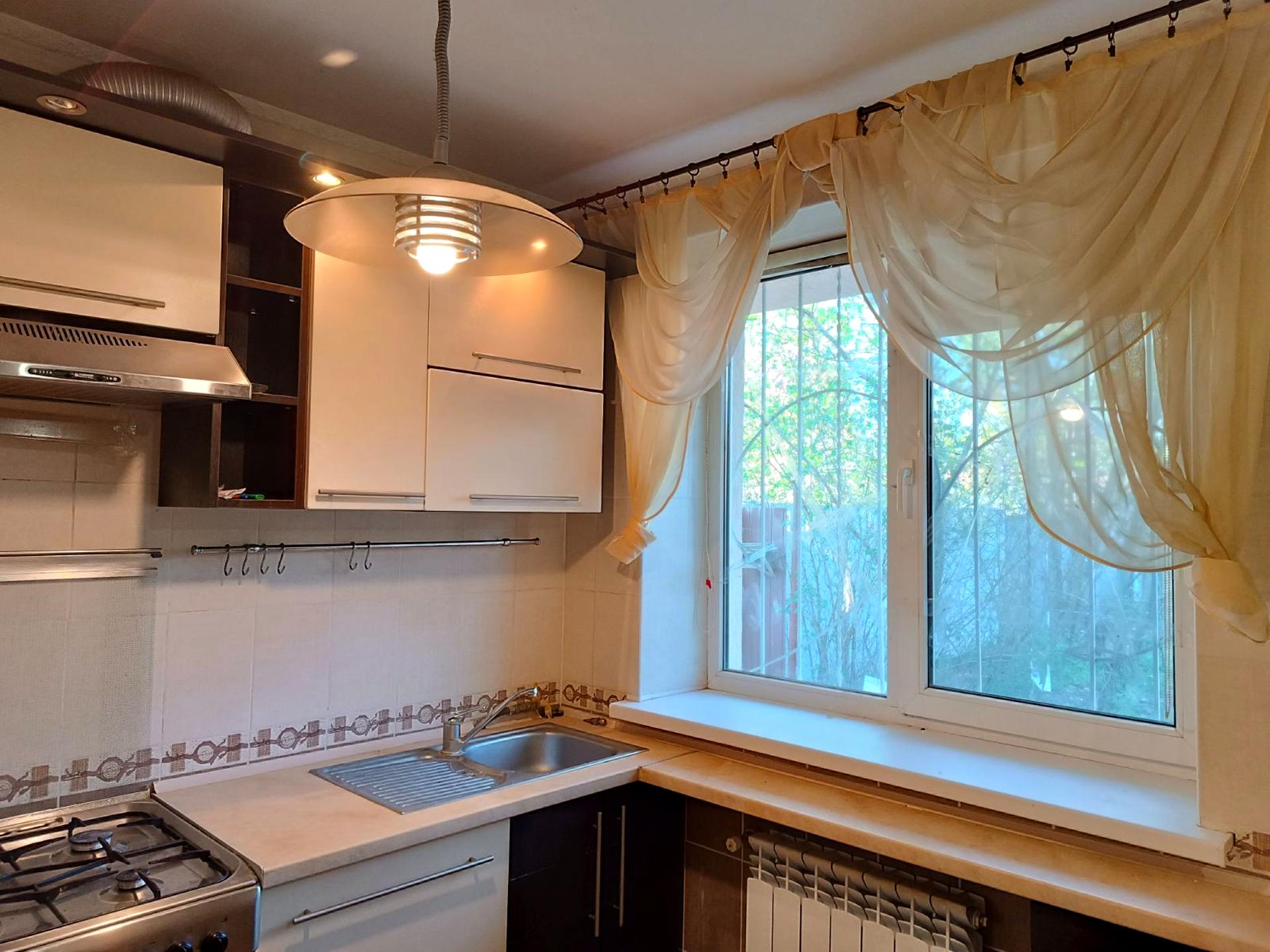 Святошинський район, Київ. с.Катеринівка, 2 км від метро Житомирська. Продаю будинок та 3 сотки ділянка. На ділянці 6 соток побудовано 2 юридично окремих будинки впритул, встик. Є офіційне розмежування землі. Один будинок продається.В іншому будинку проживає подружжя 2 людини пенсійного віку. Частина двору прохідна. На кожний будинок різні власники та окремі лічильники на все. Продаю 2 -поверховий будинок з усіма зручностями. Асфальт до самих воріт. Побудований з червоної цегли, з зовні - утеплення пінопластом + штукатурка "короїд". Гарний стан. Заведено газ на кухню. Загальна площа 55 м. Перший поверх - передпокій, кухня 9 м та просторий санвузол з вікном 6 м. На другому поверсі 2 окремі кімнати та санвузол. В наявності необхідна побутова техніка та меблі. Бойлер, пральна машина-автомат "Bosch", газова плита, витяжка, електрокотел, холодильник, супутникова антена. Інтернет. Вода – централізований водопровід по селу із місцевої скважини. Каналізація - централізована. У дворі є великий цегляний одноповерховий гараж площею 40 кв м. Гарні сусіди. Тихе місце. Поруч ліс, свіже, здорове повітря. До зупинки маршруток 5-7 хвилин пішки. Будинок вільний. Ціна 70 000 $. Комісія 5%. Можливий торг на місці. Покажемо у зручний для Вас час. Можна дзвонити до 22-00