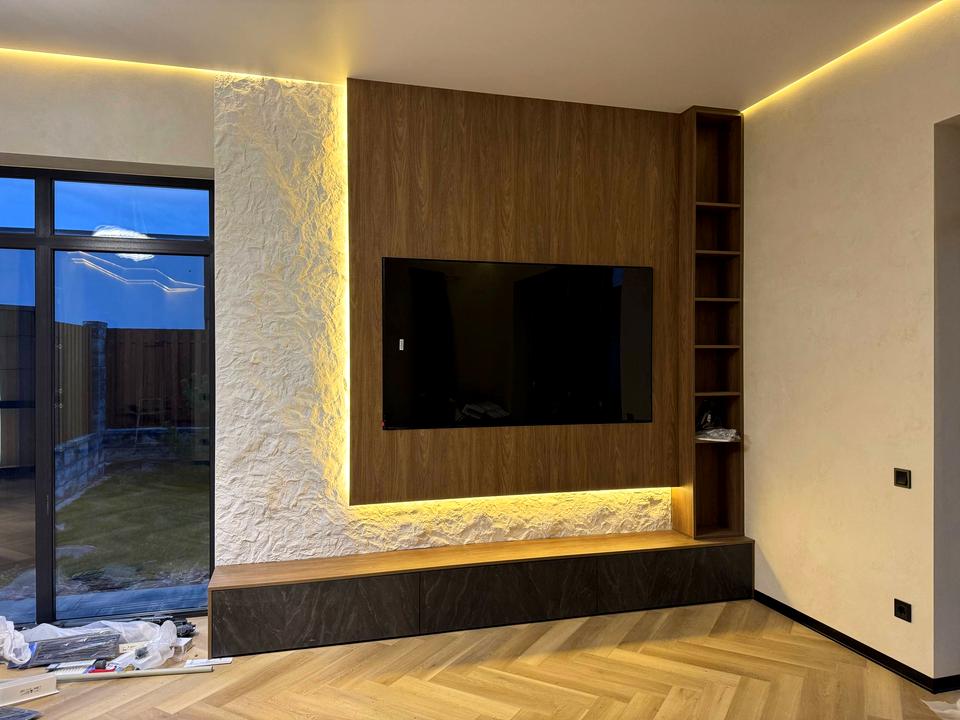 - основна спальня: ліжко та меблі у гардеробній
