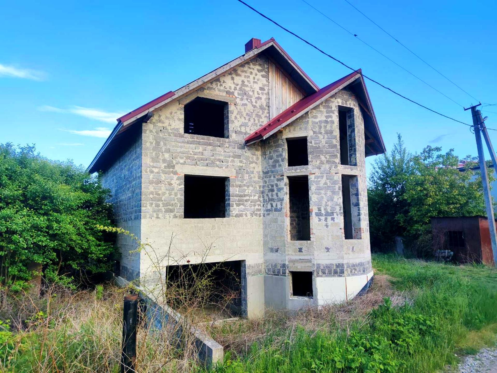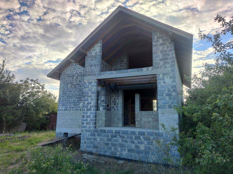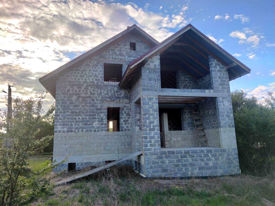 Вимурована і накрита коробка накрита металопрофілем в дачному масиві "ТЕПЛО" між Чернієвом і Хриплином по вулиці Весняній. В підвалі скважина на воду. Підведене світло 3 фази. Вимурувані і виведені димоходи під котел і камін. На подвір'ї є бетонна ємність під септик і металевий вагончик.