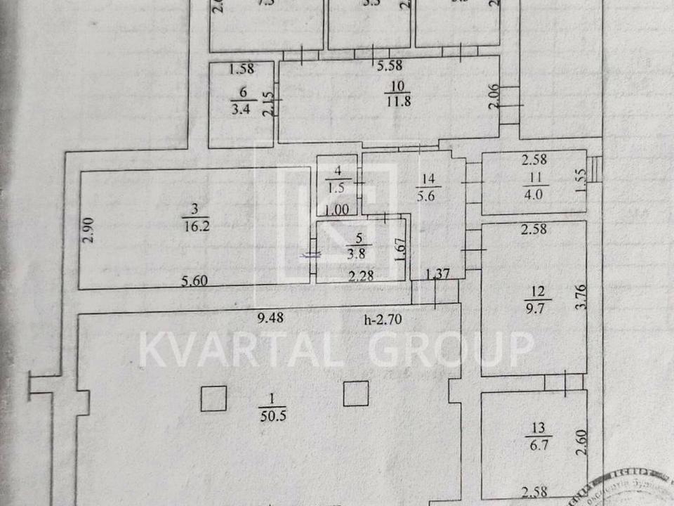 Планування - окремі кімнати - 50м2, 16м2, 7.3м2, 5.3м2, 5.5м2, 6.7м2, прохідна кімната 9.7м2