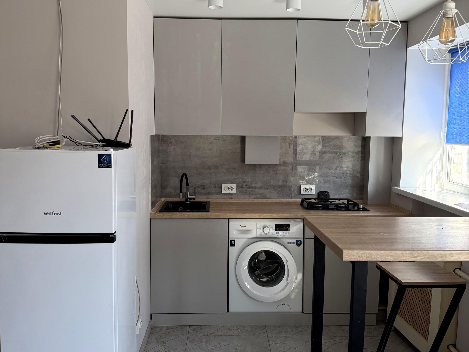 В квартире 1 комната, высота потолков 2.5 метра, Технологія будівництва - Цегляна, Тип будинку - Гостинка. Есть газ, кухонная плита газовая. Балкона нет. В квартире есть Кондиционер, Стиральная машина, Ванна, Холодильник. Общее состояние квартиры - С ремонтом. Безбарьерность: пандус. Горячая вода - электрический бойлер. Количество санузлов: 1. Интернет оптоволоконный. Работает без света - вода, газ. Тип кухни - кухня-студия. Количество спален: 1. Без комиссии