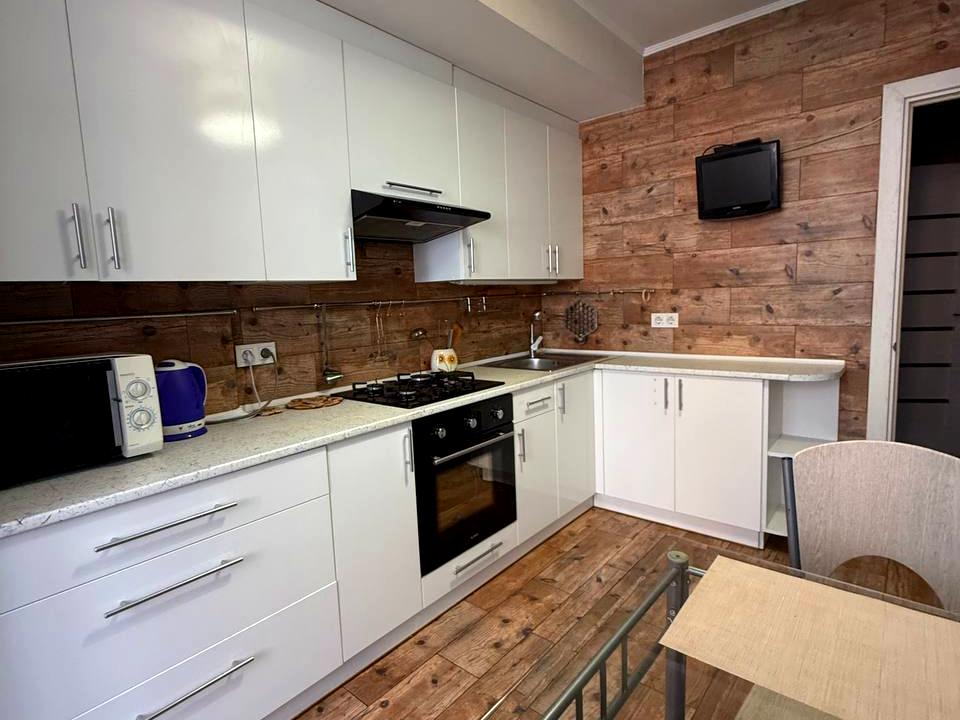 В квартире 1 комната, высота потолков 2.85 метра, Технологія будівництва - Цегляна, Тип будинку - Спец. проект. Есть газ, кухонная плита газовая. Балкона нет. В квартире есть Телевизор, Стиральная машина, Холодильник, Микроволновка, Посуда. Дом построен в 2014 году. Общее состояние квартиры - С ремонтом. Безбарьерность: дверные проемы в доме шириной более 0.9 м, лифт, приспособленный к инвалидной коляске. Горячая вода - газовый котел. Количество санузлов: 1. Интернет оптоволоконный. Работает без света - вода, газ, интернет. Тип кухни - отдельная кухня. Количество спален: 1. Нет подземного паркинга, доступного как укрытие. Инфраструктура территории: детская площадка, спортивная площадка. Комиссия за услуги 50 %