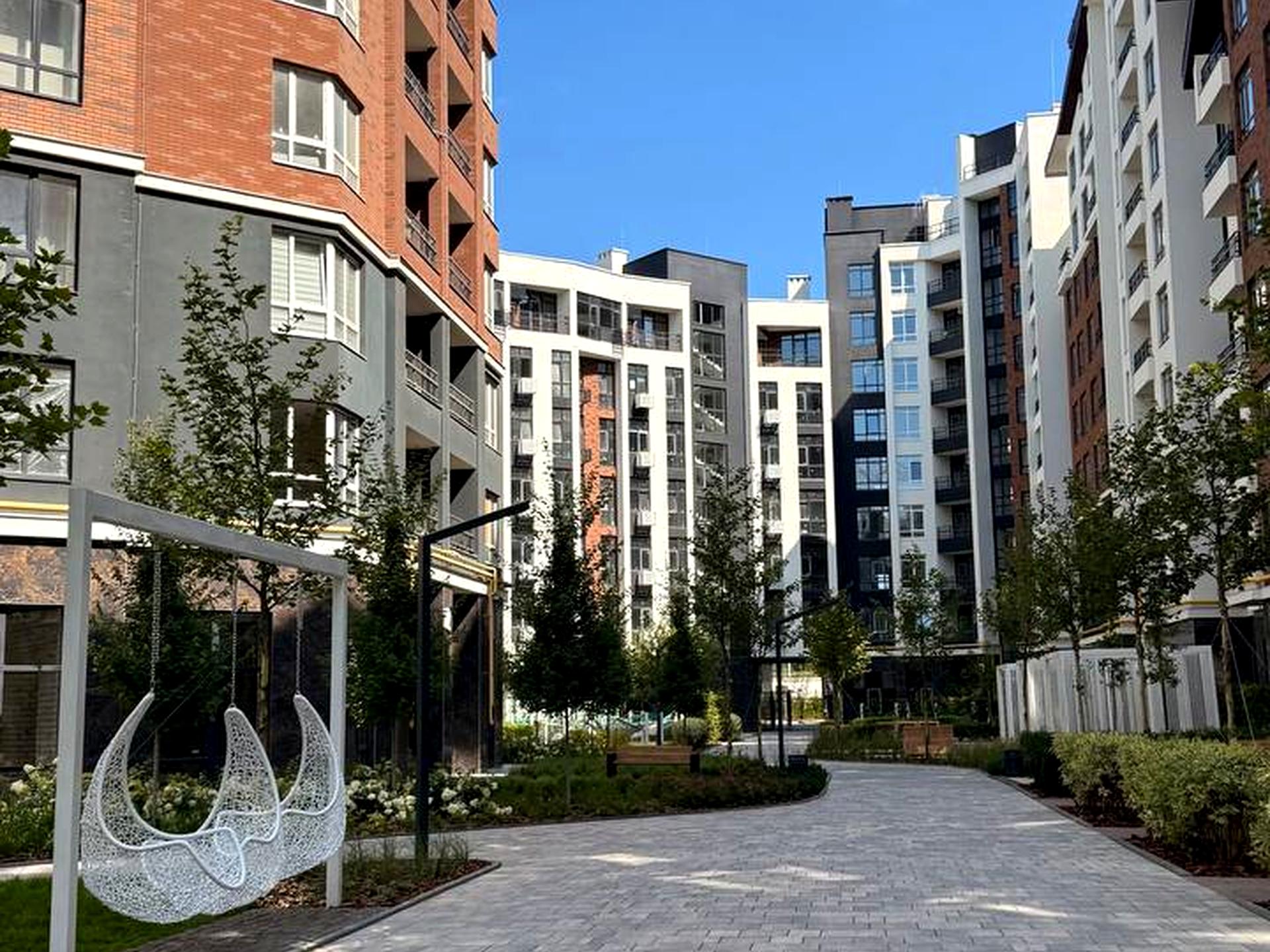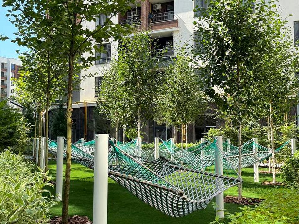 Інфраструктура комплексу: АТБ, Нова Пошта, кав’ярні, аптека, спортзал Riots, закрита територія з охороною, зона відпочинку з фонтаном, лежаками,