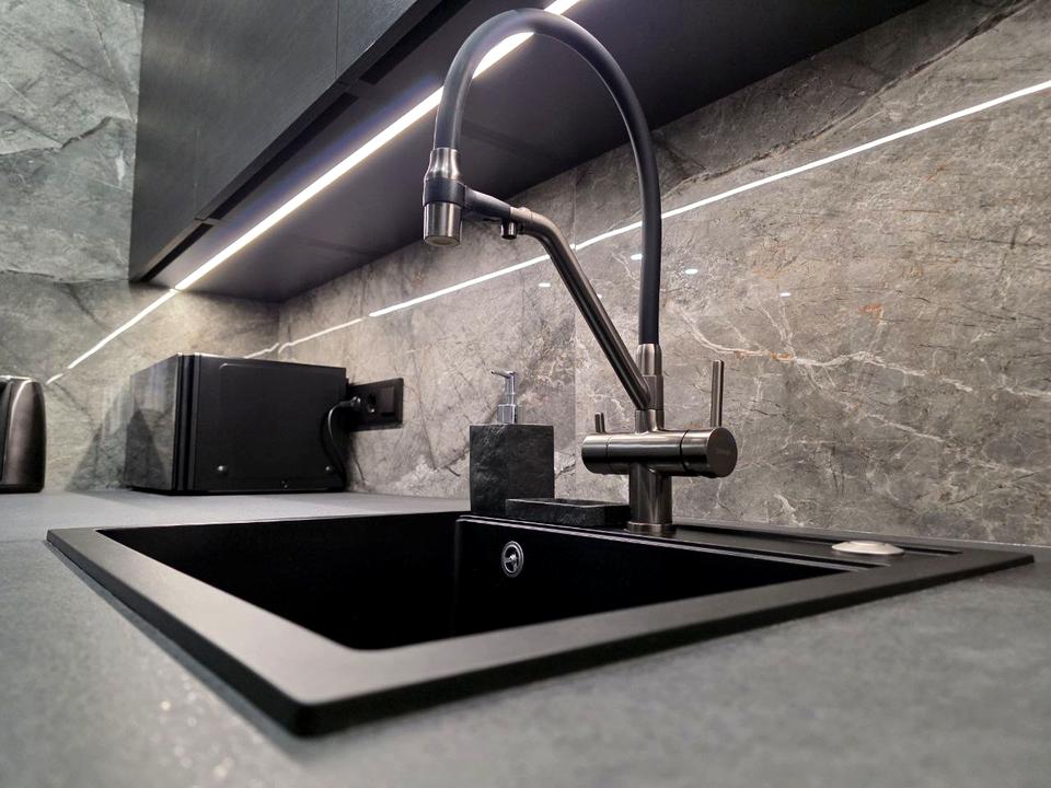 - автономне опалення газовим котлом, теплі підлоги, інверторні кондиціонери, рекуператор, подрібнювач відходів, посудомийна машина;