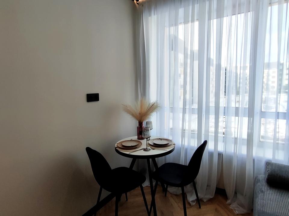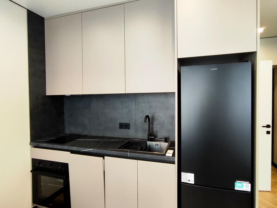Квартира повністю укомплектована необхідними меблями і технікою. Є посудомийка, варильна панель, духова шафа, холодильник, пралка, бойлер. Також ви отримуєте два спальні місця у вигляді двоспального ліжка та дивану.