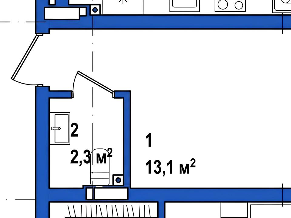 Загальна площа розподілена максимально раціонально. Основна кімната площею 13,1 м² дозволяє