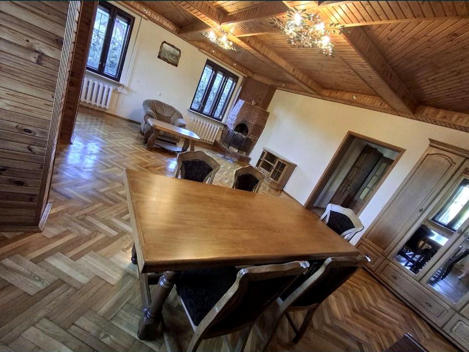 Дом, 2 этажа, 5 комнат. Материал стен – блочно-кирпичный. Подъезд к дому – асфальт. Площадь участка 20 соток. Высота потолков 2.7 метра. Вид из окон во двор, на парк. Планировка комнат Раздельная. Есть газ. Есть горячая вода. Есть отопление. Совместный санузел, туалет/душ. Покрытие полов: покрытие полов - паркет, покрытие полов - плитка. В доме 1 балкон. Тип кухни - кухня-студия. Есть ограждение. Есть подвал. В доме есть Телевизор, Подогрев полов, Камин, Кондиционер, Стиральная машина, Душевая кабина, Холодильник, Микроволновка, Посудомойная машина, Сад/огород, Зона мангала, Гараж, Беседка, Сауна. Дом построен в 2010 году. Своя канализация. Общее состояние дома - С ремонтом. Рядом есть лес, остановки. Наружное утепление стен. Работает без света - вода, газ, отопление, интернет, резервное питание (акумуляторы/генератор). Количество паркомест: 3 и больше. Комиссия за услуги 50 %