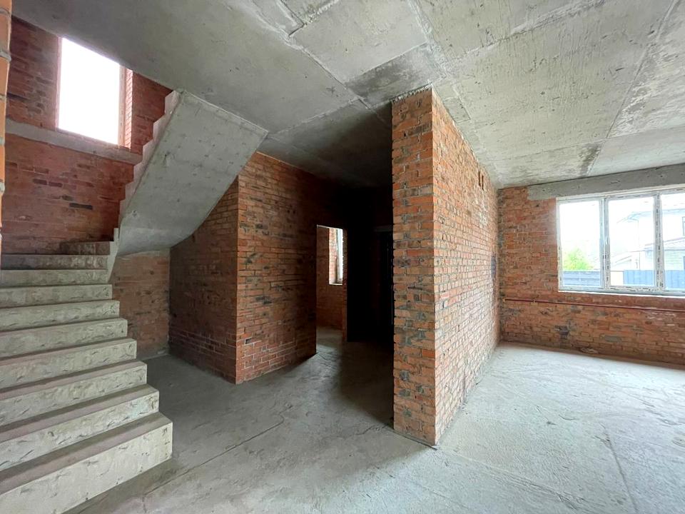 Дом, 2 этажа, 4 комнаты. Материал стен – кирпичный, фундамент дома – блоки, материал перекрытий – монолитный железобетон. Подъезд к дому – асфальт. Площадь участка 5 соток. Вид из окон во двор. Газ природный. Холодная вода - скважина, горячая вода - газовый котел. Отопление котел газовый. В доме 2 раздельных санузла, туалет/ванна. Сантехники нет. Проведены. Входная дверь бронированная, лестница бетонная. Покрытие полов - стяжка. В доме нет балконов. Тип кухни - кухня-студия. Окна металлопластиковые, новые. Покрытие крыши - металлочерепица. Есть ограждение. Нет подвала. В доме есть . Дом построен в 2023 году. Своя канализация. Общее состояние дома - Без ремонта. Рядом есть детсад, остановки, развлекательные заведения, парк, лес, супермаркет, школа. Срочно. Есть автономная электроэнергия - . Владелец соглашается продать по программе єОселя. Без комиссии