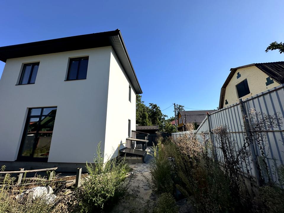 Дом, 2 комнаты, 3 комнаты. Материал стен – газоблок, фундамент дома – железобетон, материал перекрытий – монолитный железобетон. Подъезд к дому – асфальт. Площадь участка 3 сотки. Высота потолков 2.8 метра. Вид из окон во двор. Планировка комнат Раздельная. Есть газ. Есть холодная вода. Отопление котел газовый. Совместный санузел, туалет/ванна. Входная дверь бронированная, лестница бетонная. Нет покрытия полов, подогрева полов нет. Тип кухни - кухня-студия. Окна металлопластиковые, новые. Покрытие крыши - металлочерепица. Есть ограждение. Есть подвал. Дом построен в 2023 году. Своя канализация. Общее состояние дома - От строителей свободная планировка. Рядом есть школа, остановки, супермаркет, парк. Прямая продажа. Наружное утепление стен. Владелец соглашается продать по программе єОселя. Работает без света - вода. Без комиссии
