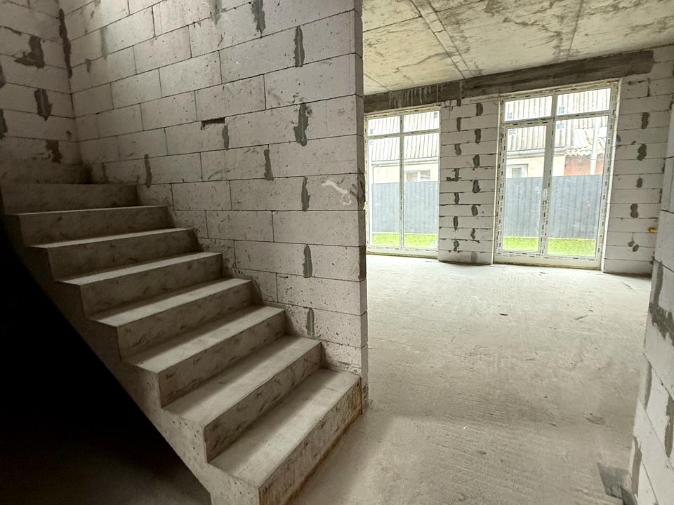 Таунхаус, 2 этажа, 4 комнаты. Материал стен – газоблок, фундамент дома – блоки, материал перекрытий – сборный железобетон. Подъезд к дому – асфальт. Площадь участка 1 сотка. Высота потолков 2.8 метра. Вид из окон во двор. Планировка комнат Раздельная. Газ природный. Холодная вода - водопровод, горячая вода - газовый котел. Отопление котел газовый. В доме 2 раздельных санузла, туалет/ванная/душ. Сантехника новая. Разводки труб нет. Входная дверь бронированная, лестница бетонная. Покрытие полов - стяжка. В доме нет балконов. Тип кухни - кухня-студия. Окна металлопластиковые, новые. Покрытие крыши - металлочерепица. Есть ограждение. Нет подвала. В доме есть Счетчики. Дом построен в 2025 году. Централизованная канализация. У дома 1 собственник. Общее состояние дома - Без ремонта. Автопарковка, Возможность прописки. Рядом есть школа, детсад, остановки, развлекательные заведения, парк, супермаркет. Дом приватизирован. Прямая продажа, Эксклюзивный договор. Сантехника новая. Интернет оптоволоконный. Наружное утепление стен. Работает без света - вода, газ, отопление, интернет. Без комиссии