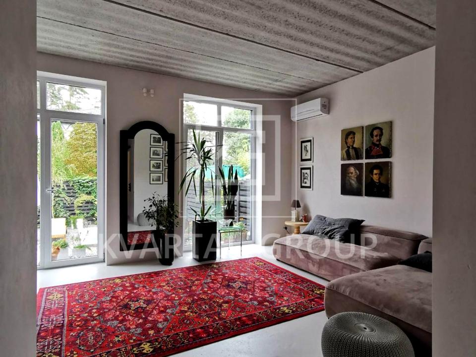 Будинок-дуплекс з газовим опаленням, унікальним дизайнерским ремонтом, меблями, технікою та декором, в ідеальному місці - у лісовій частині Ірпеня, поряд з необхідною інфраструктурою.