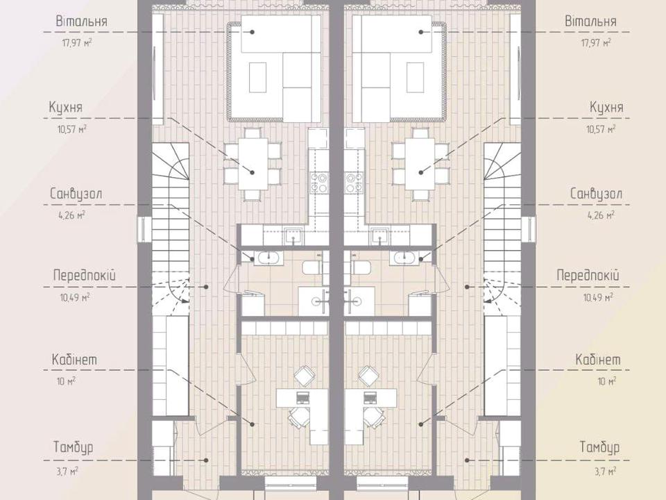 Уявіть ранки з тишею передмістя, вечори на власній терасі та простір, де кожен член сім’ї відчуває себе комфортно. Саме такий дуплекс ми пропонуємо — 120 м² на ділянці 3,5 сотки, де поєднані затишок, сучасні матеріали та практичне планування.