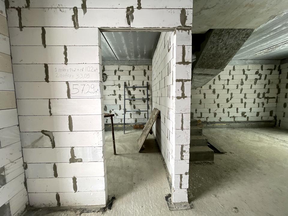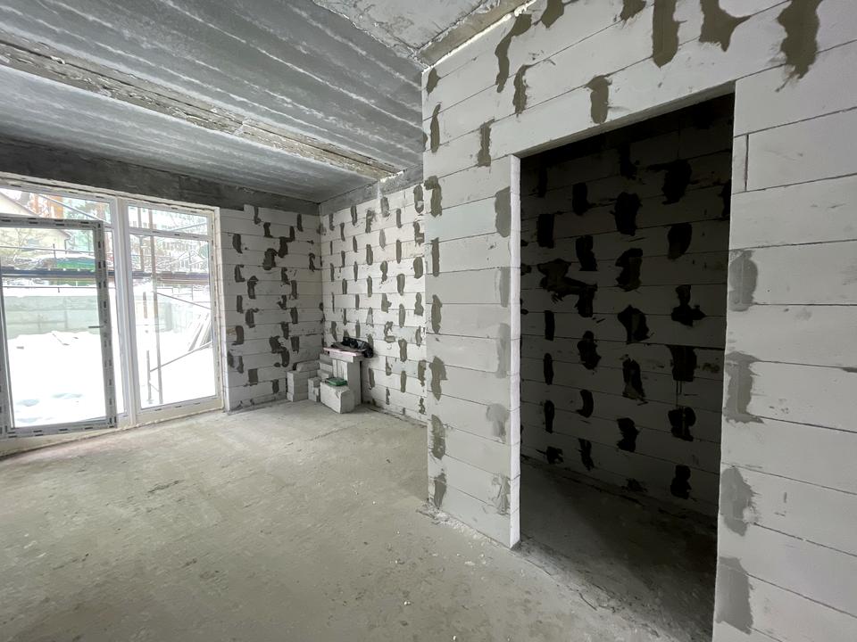 Будинок зведений на монолітно-збірному фундаменті, стіни виконані з газобетону товщиною 300 мм та утеплені базальтовою ватою, що забезпечує надійну теплоізоляцію. Декоративне оздоблення фасаду та фасадна плитка додають сучасного вигляду.