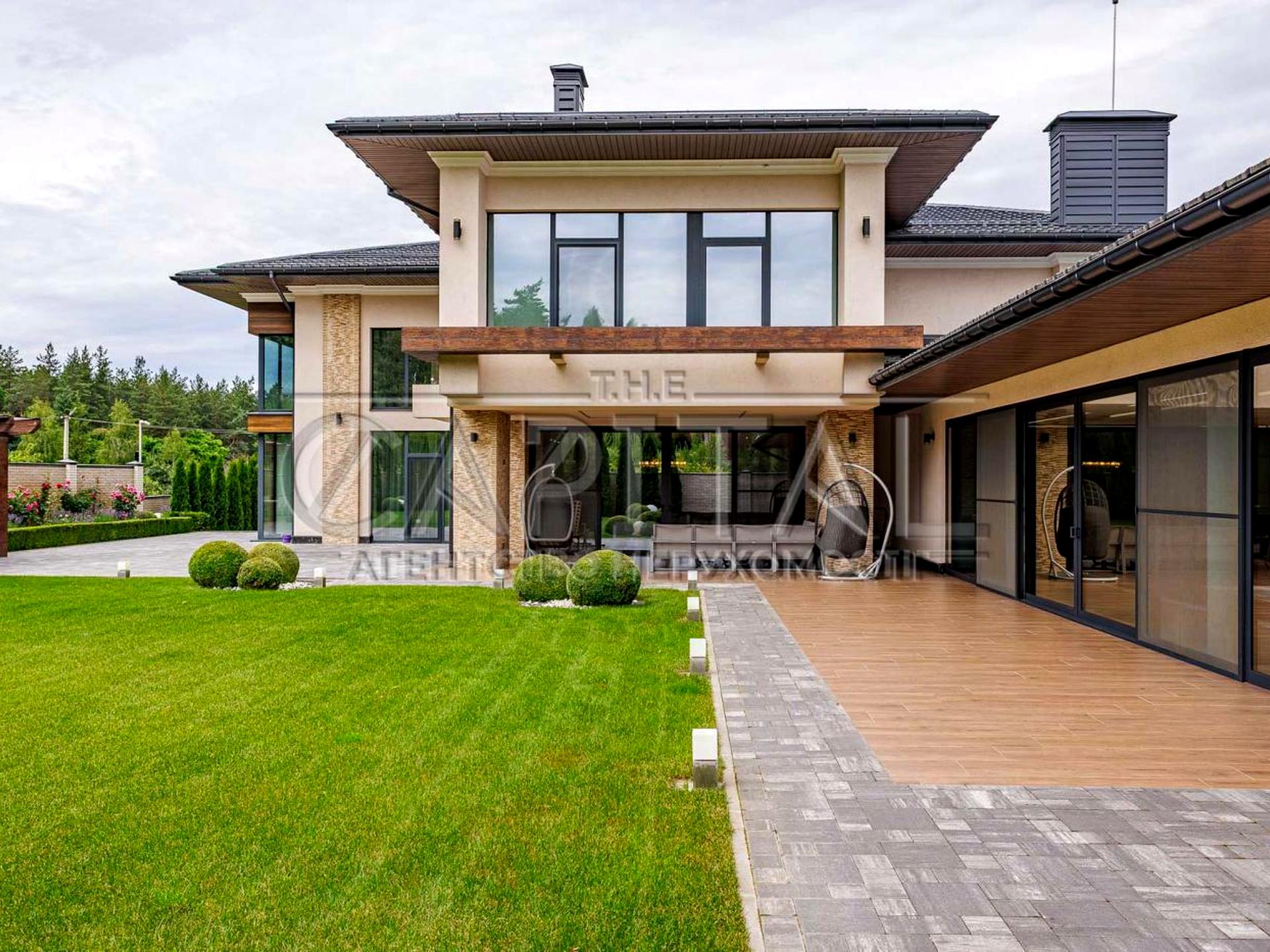 Ландшафтний дизайн ділянки: декоративні дерева та кущі, клумби, автополив, освітлення. Висока огорожа, асфальтований під'їзд, елітне та статусне оточення. Окрема зона барбекю із зоною відпочинку.