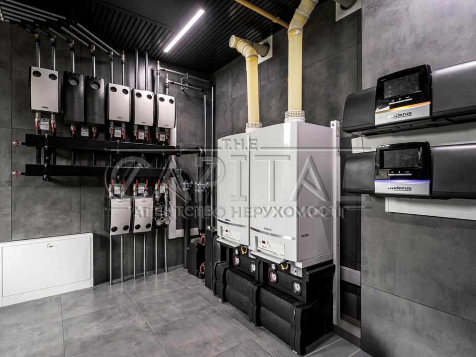 Два газові котли, тепловий насос, водяна тепла підлога.