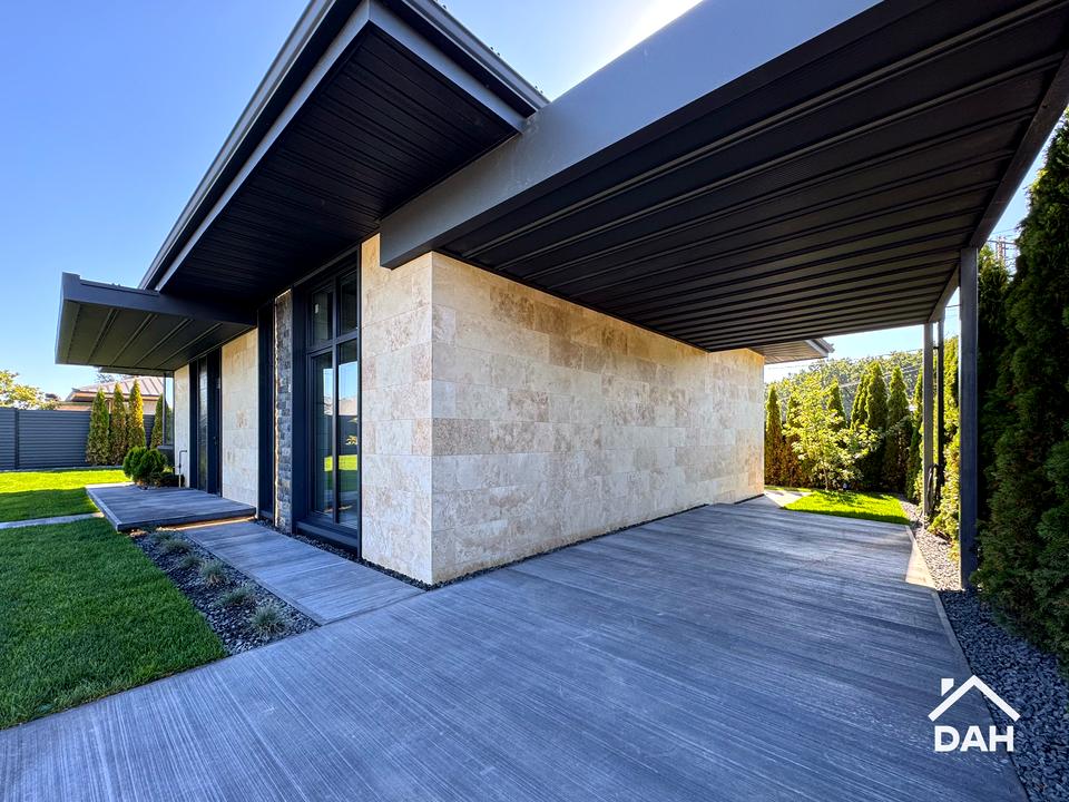• фасад — травертин, натуральний камінь