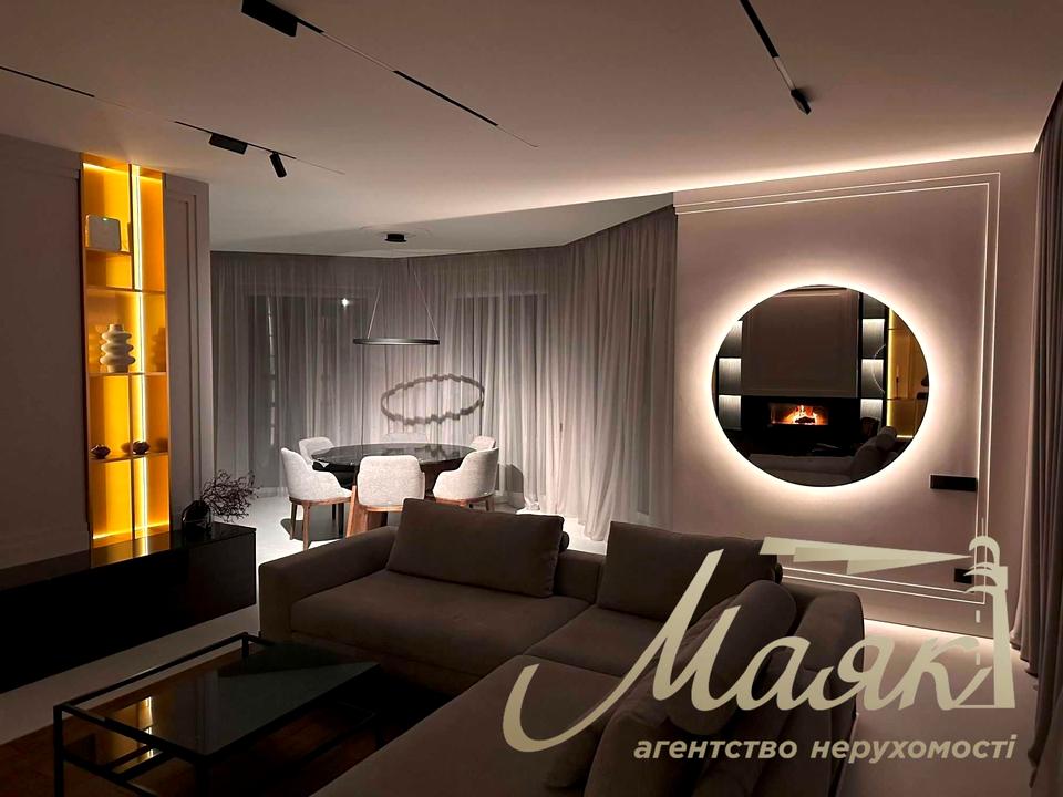 Будинок площею 356 м² розташований на ділянці 18 соток з професійним ландшафтним дизайном. У будівництві використано якісні матеріали та сучасні енергоефективні рішення. Будинок повністю готовий до проживання, укомплектований вбудованими меблями, технікою та сантехнікою, передбачено теплий гараж на два автомобілі.