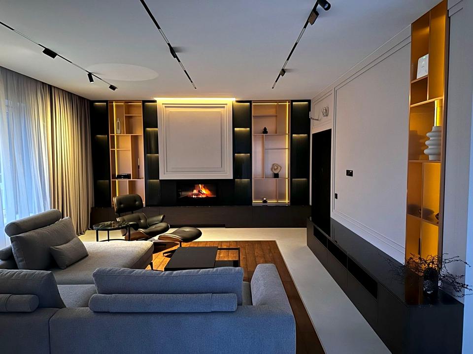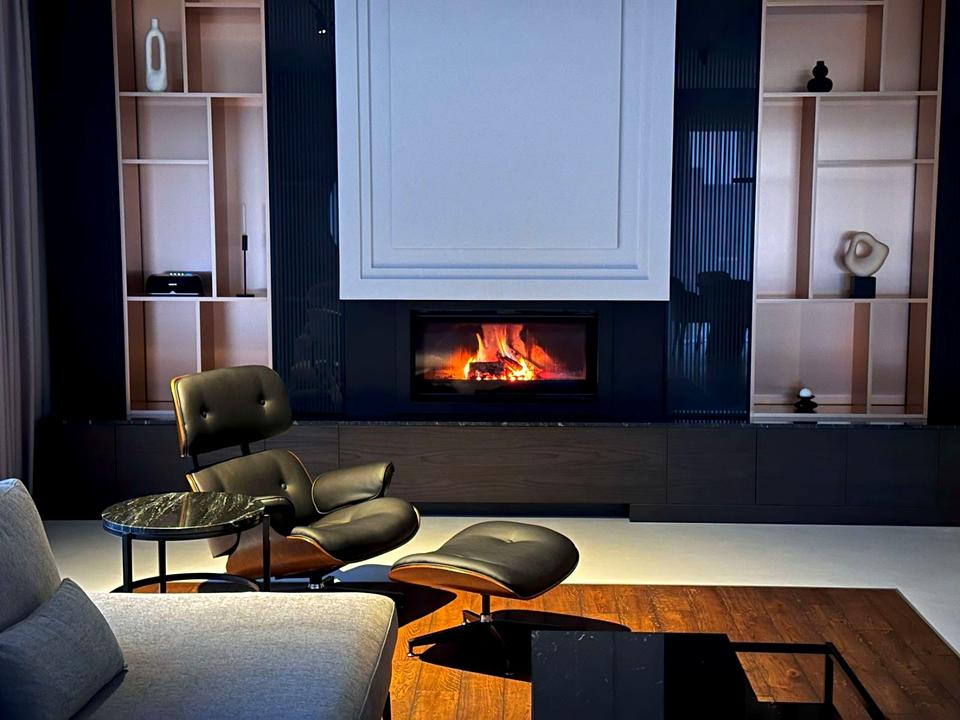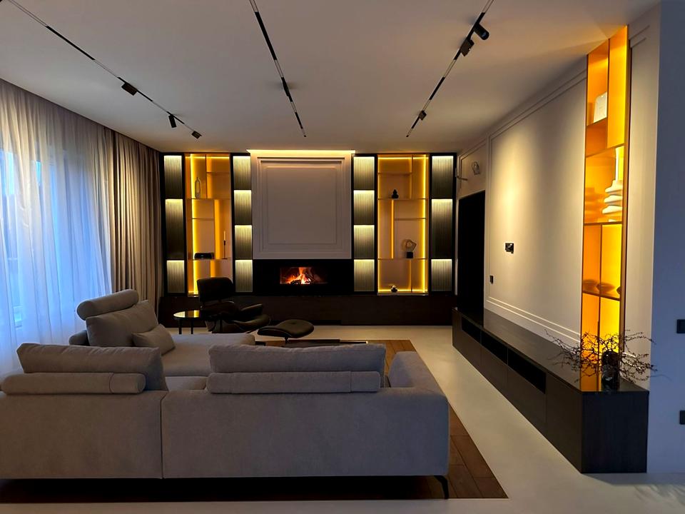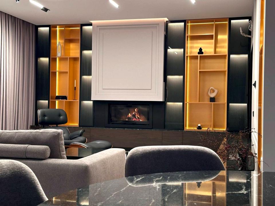• Простора гостина з каміном