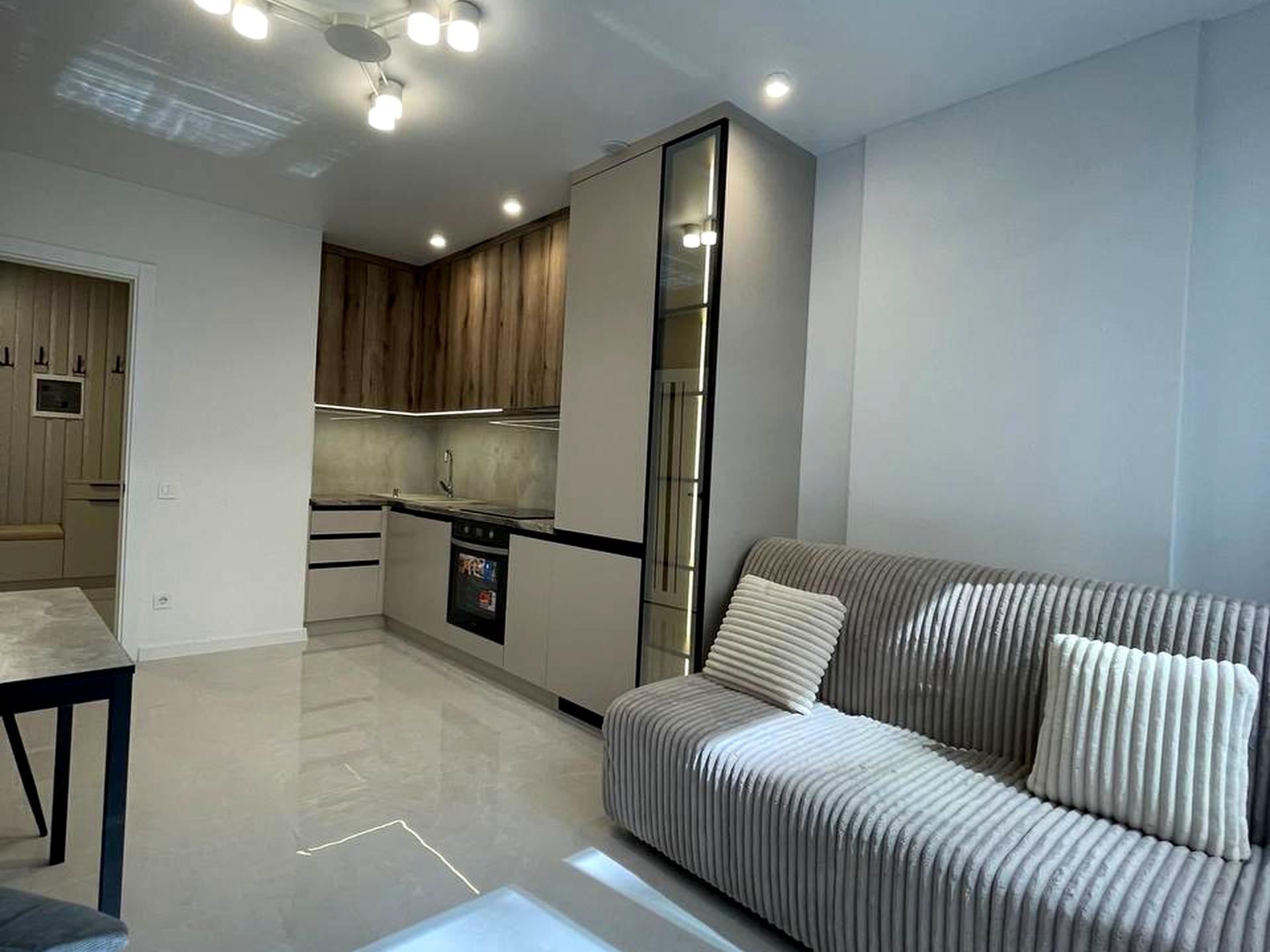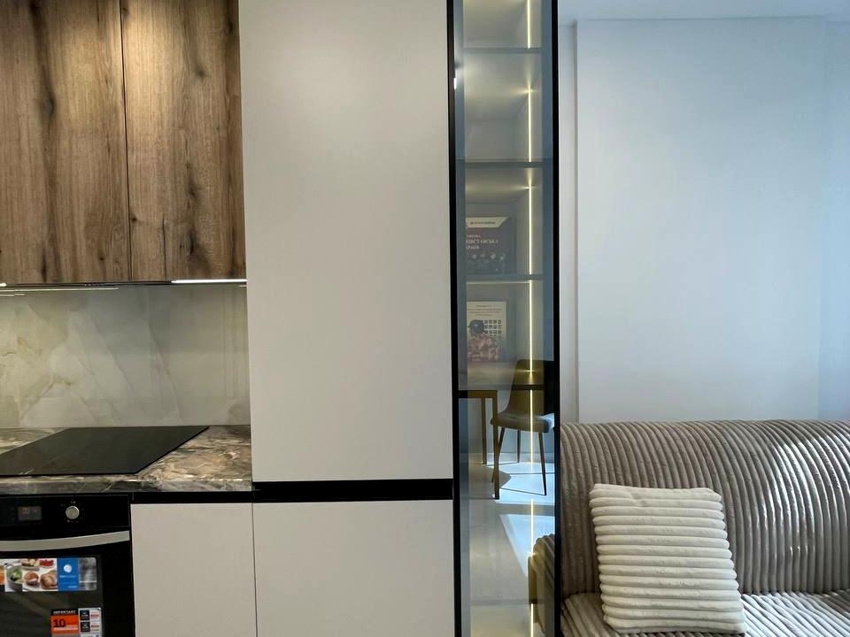 Обладнана всім необхідною технікою, посудомийною машиною, вбудованим холодильником, індукційною плитою, духовою шафою, витяжкою, пральною машиною, кондиціонером.