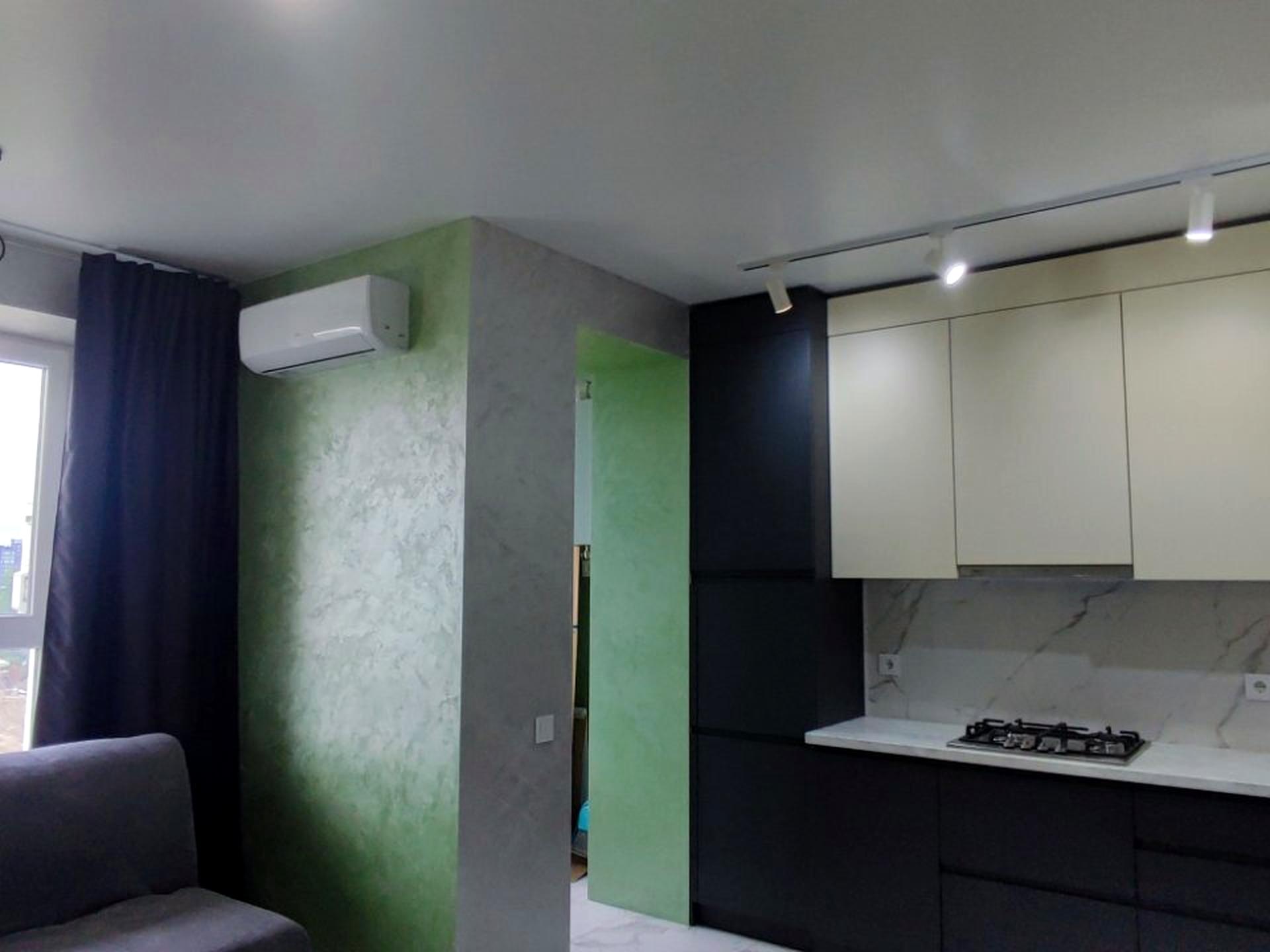 В квартире 1 комната, Технологія будівництва - Цегляна, Тип будинку - Спец. проект. Планировка комнат Раздельная. В квартире есть Шкаф, Кровать, Подогрев полов, Кондиционер, Стиральная машина, Холодильник, Микроволновка, Посудомойная машина, Счетчики. Дом построен в 2020 году. Общее состояние квартиры - С ремонтом. Срочно. Безбарьерность: вход в дом на уровне земли. Работает без света - вода, газ, интернет. Комиссия за услуги 70 %