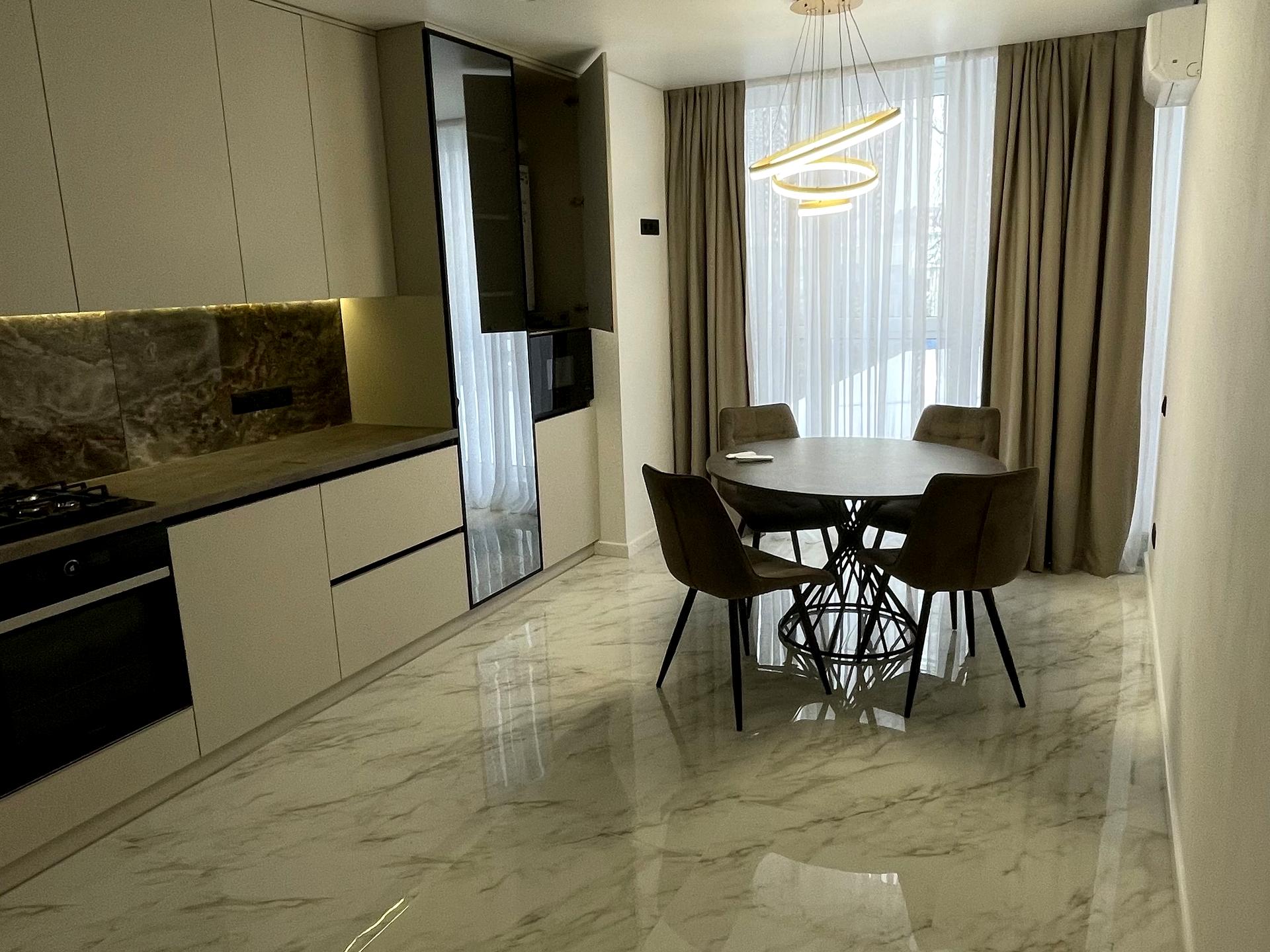 • Повний комплект техніки: кондиціонер, посудомийка, пральна та сушильна машини, духовка, TV.