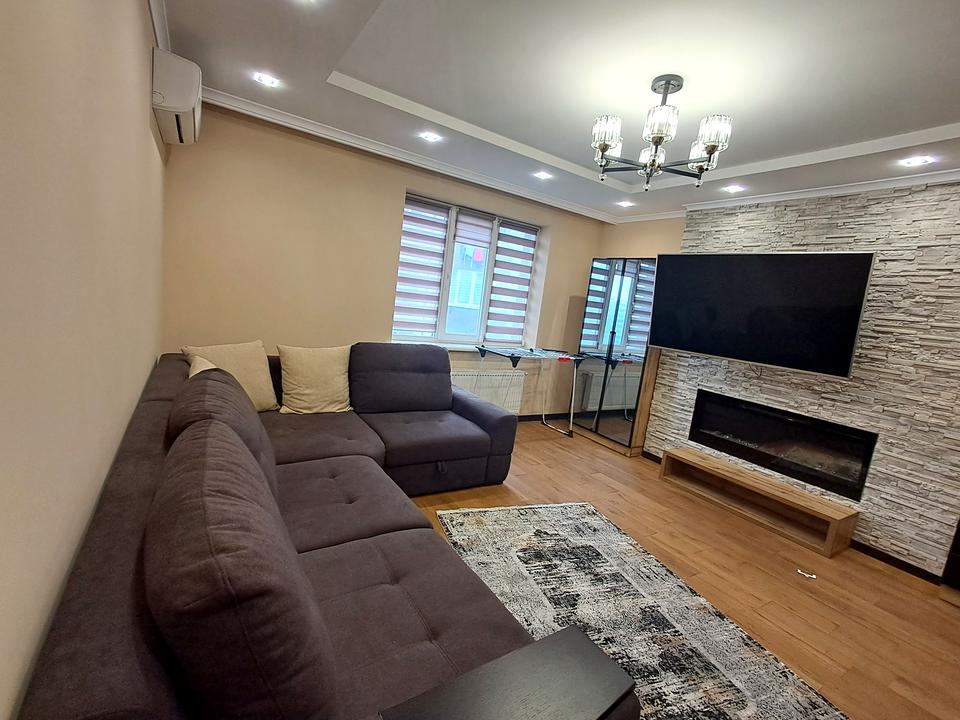 В квартире 3 комнаты, высота потолков 2.7 метра, Технологія будівництва - Цегляна, Тип будинку - Спец. проект. Планировка комнат Раздельная. Есть газ, кухонная плита газовая. Балкона нет. В квартире есть Телевизор, Спутниковое ТВ, Подогрев полов, Камин, Кондиционер, Стиральная машина, Ванна, Холодильник, Микроволновка, Посудомойная машина, Посуда. Дом построен в 2017 году. Общее состояние квартиры - С ремонтом. Горячая вода - газовый котел. Количество санузлов: 2. Интернет оптоволоконный. Работает без света - вода, газ, интернет. Тип кухни - отдельная кухня. Количество спален: 3. Комиссия за услуги 70 %
