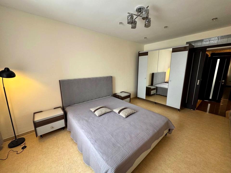 В квартире 2 комнаты, высота потолков 2.8 метра, Технологія будівництва - Цегляна, Тип будинку - Спец. проект. Планировка комнат Раздельная. Есть газ, кухонная плита газовая. Балкона нет. В квартире есть Телевизор, Спутниковое ТВ, Подогрев полов, Кондиционер, Стиральная машина, Ванна, Холодильник, Микроволновка, Посуда. Дом построен в 2012 году. Общее состояние квартиры - С ремонтом. Горячая вода - газовый котел. Количество санузлов: 1. Интернет беспроводной. Работает без света - вода, интернет. Тип кухни - кухня-студия. Количество спален: 2. Комиссия за услуги 100 %