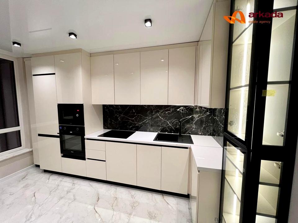 Вмонтована техніка: холодильник, духовка, мікрохвильовка, посудомийка. Також є пральна машина у санвузлі.