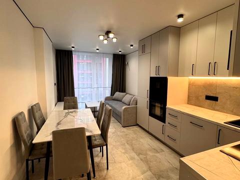 Світла, простора та продумана до дрібниць квартира площею 43 м², розташована на 7 поверсі із 14. Сучасний дизайн, натуральні відтінки й якісні матеріали створюють атмосферу затишку, гармонії та комфорту. Переваги квартири: • тепла підлога по всій квартирі; • власна дахова котельня; • система кондиціювання (обігрів та охолодження); • повністю укомплектована технікою: посудомийна машина, пральна машина, телевізор, бойлер, холодильник, мікрохвильова піч; • зона відпочинку з великим м’яким диваном; • кухня-студія з сучасним гарнітуром, обіднім столом і стильними стільцями; • стильна ванна кімната з душовою кабіною, підвісним унітазом і бойлером. Родзинка комплексу — власний басейн на даху...