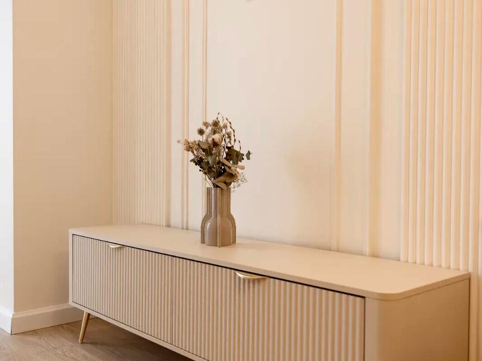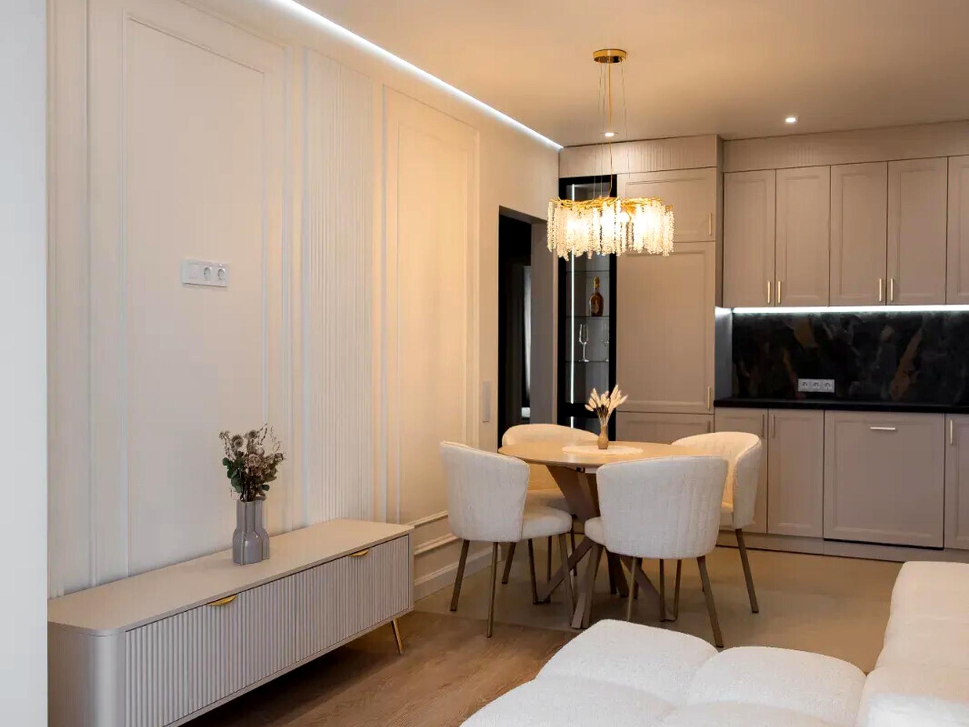 Квартира за функціоналом як три кімнатна, адже має кухню-вітальню площею у 17 м2, і що зручно окрему гардеробну у коридорі.