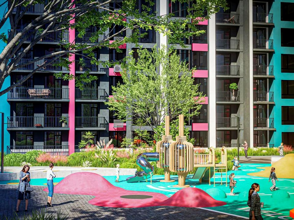 - сучасні яскраві дитячі та спортивні майданчики