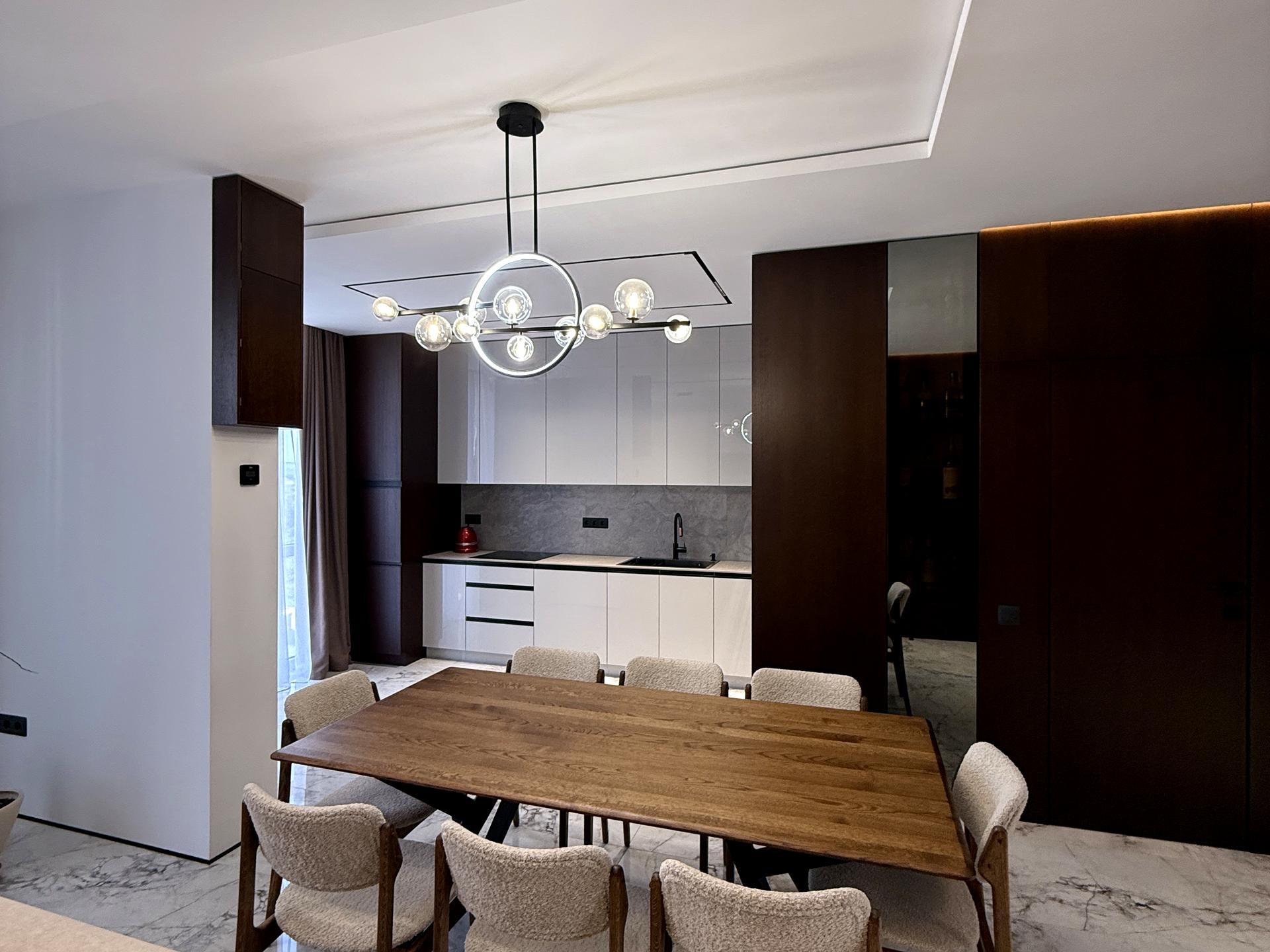 Стильний ремонт з дорогих матеріалів: іспанська плитка Porcelanosa, польська Tubadzin, фасади з дубового шпону та акрилу