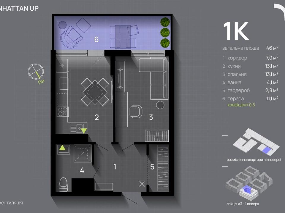 Продаж 1-кімнатної квартири в ЖК Manhattan UP