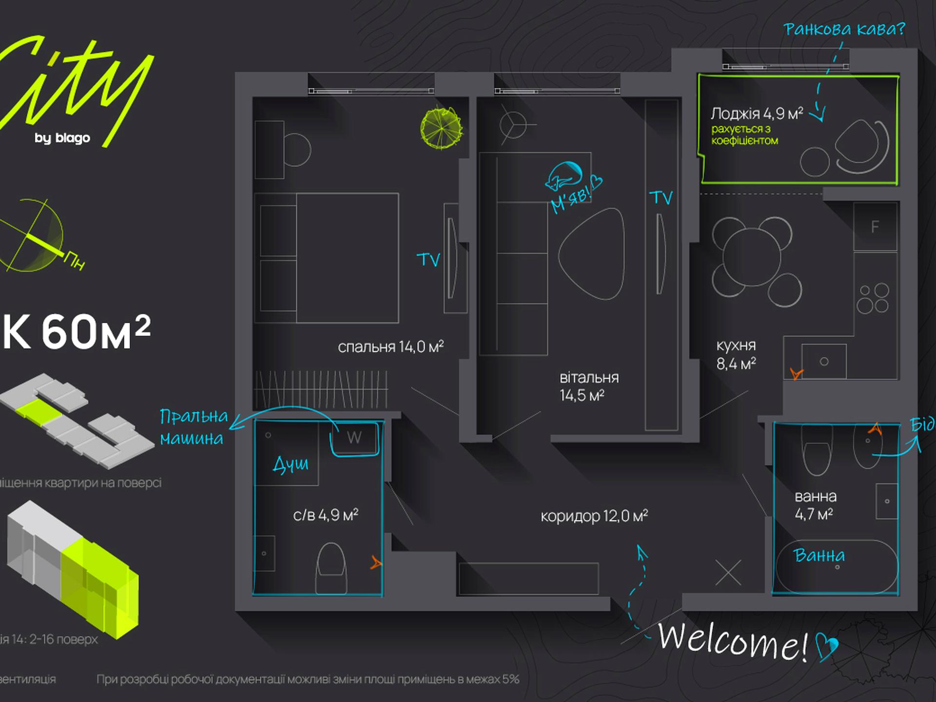 Площа - 60м.кв.
