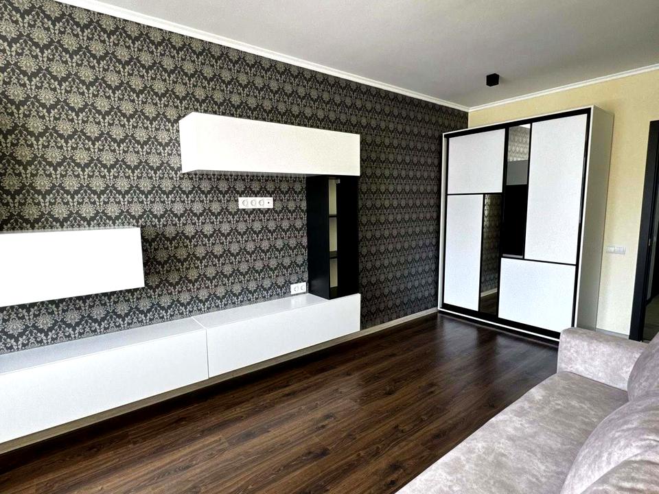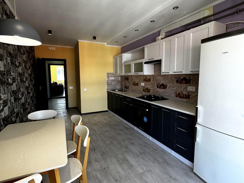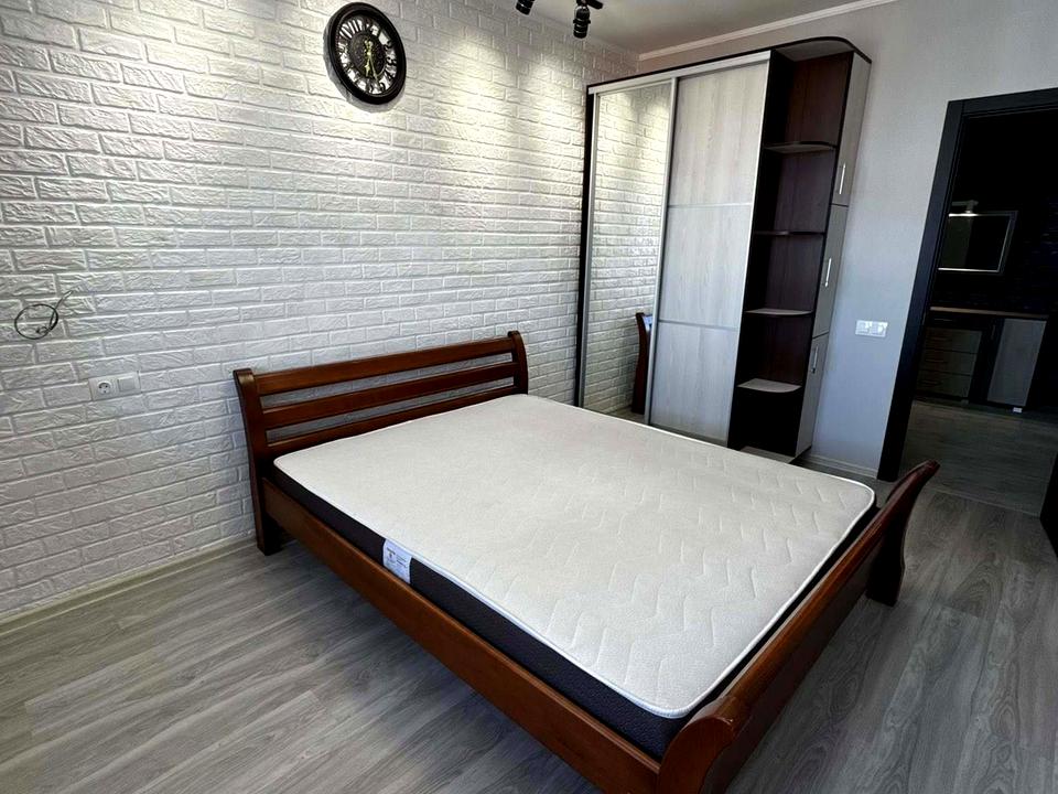 Повністю готова до проживання: обладнана необхідною технікою (холодильник, духова шафа, плита) та меблями (двоспальне ліжко, шафа, диван).