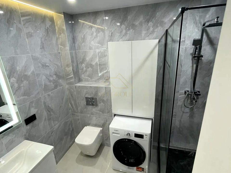 - просторий санвузол з тропічним душем, рукомийник і дзеркалом з підсвіткою, пральна машина (Whirlpool), інсталяція
