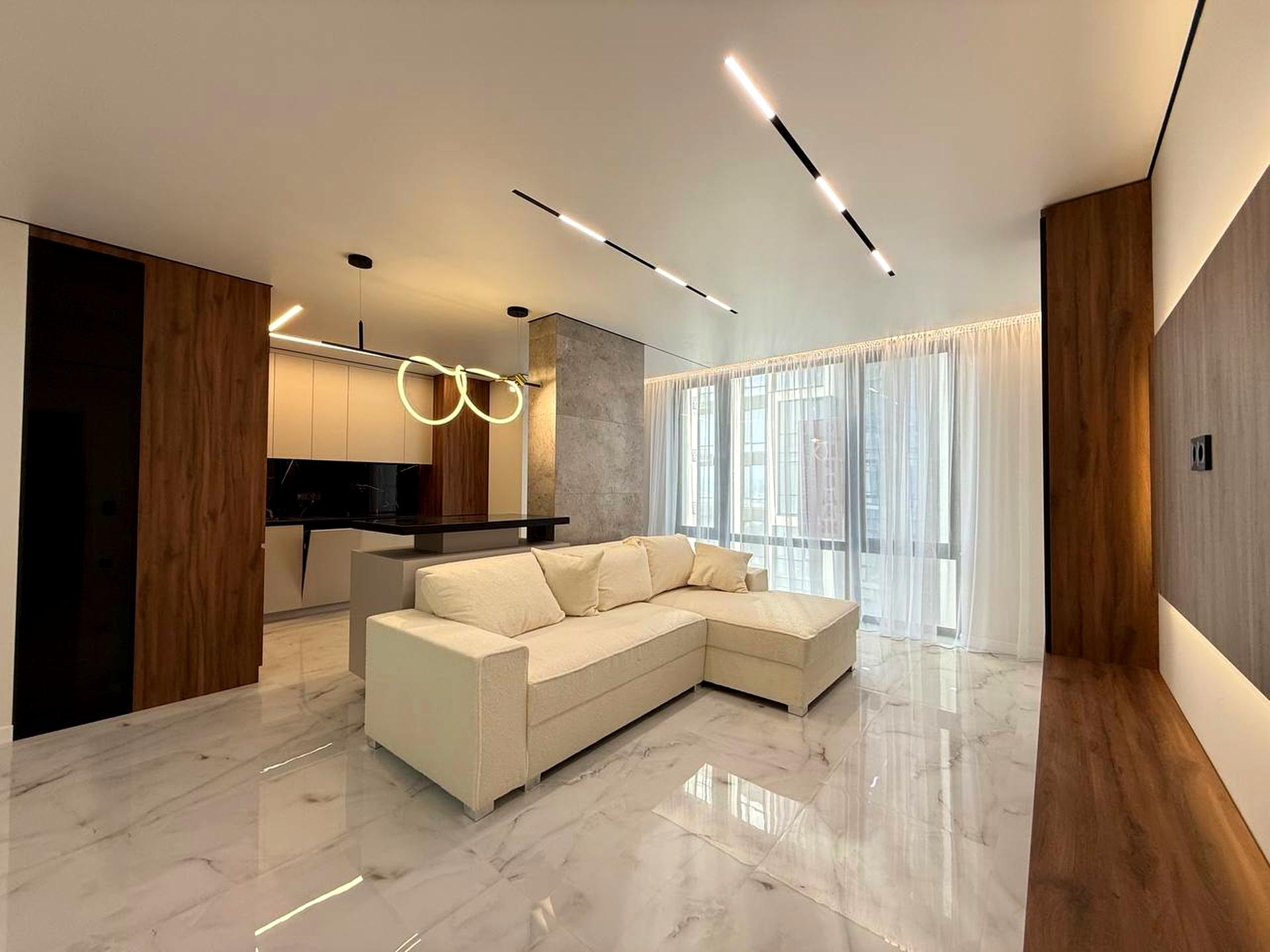 • простора кухня-вітальня, розділена на робочу та відпочинкову зони