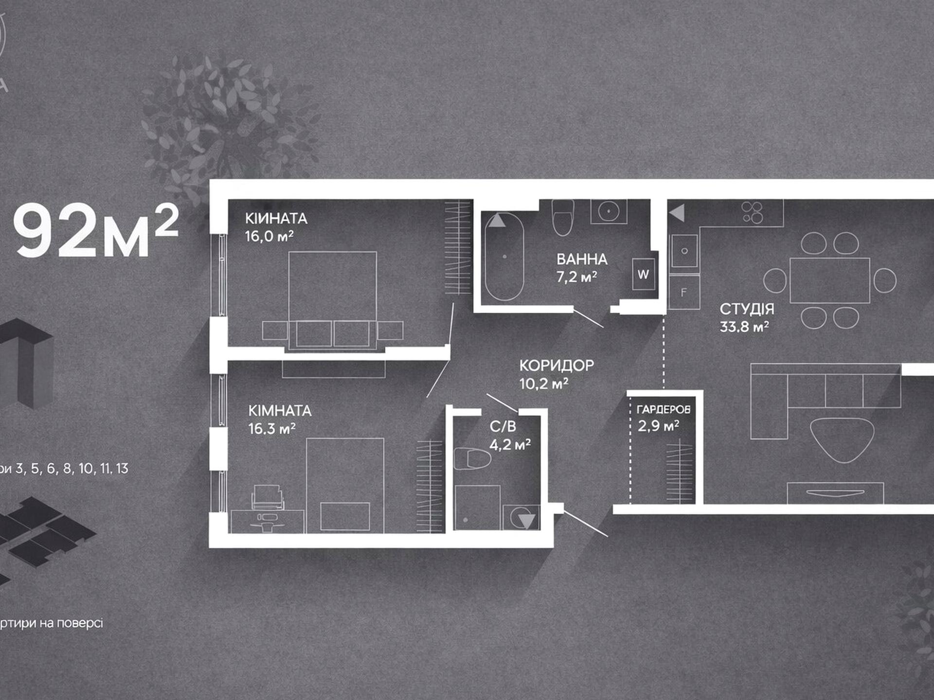 92 м² продуманого простору в сучасному комплексі бізнес-класу.