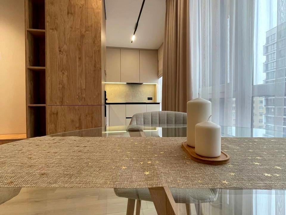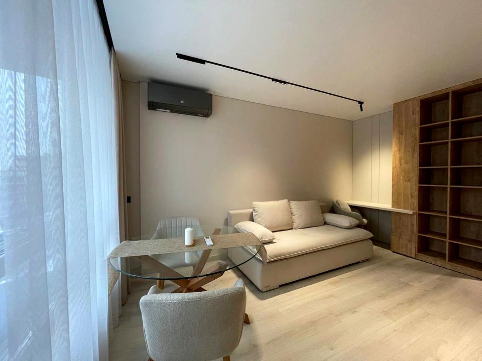 В квартире 1 комната, высота потолков 2.7 метра, Технологія будівництва - Монолітно-каркасна, Тип будинку - Спец. проект. Планировка комнат Раздельная. В квартире есть Подогрев полов, Кондиционер, Стиральная машина, Душевая кабина, Ванна, Холодильник, Микроволновка, Посудомойная машина. Дом построен в 2024 году. Общее состояние квартиры - С ремонтом. Безбарьерность: вход в дом на уровне земли. Работает без света - вода, отопление, лифт. Без комиссии