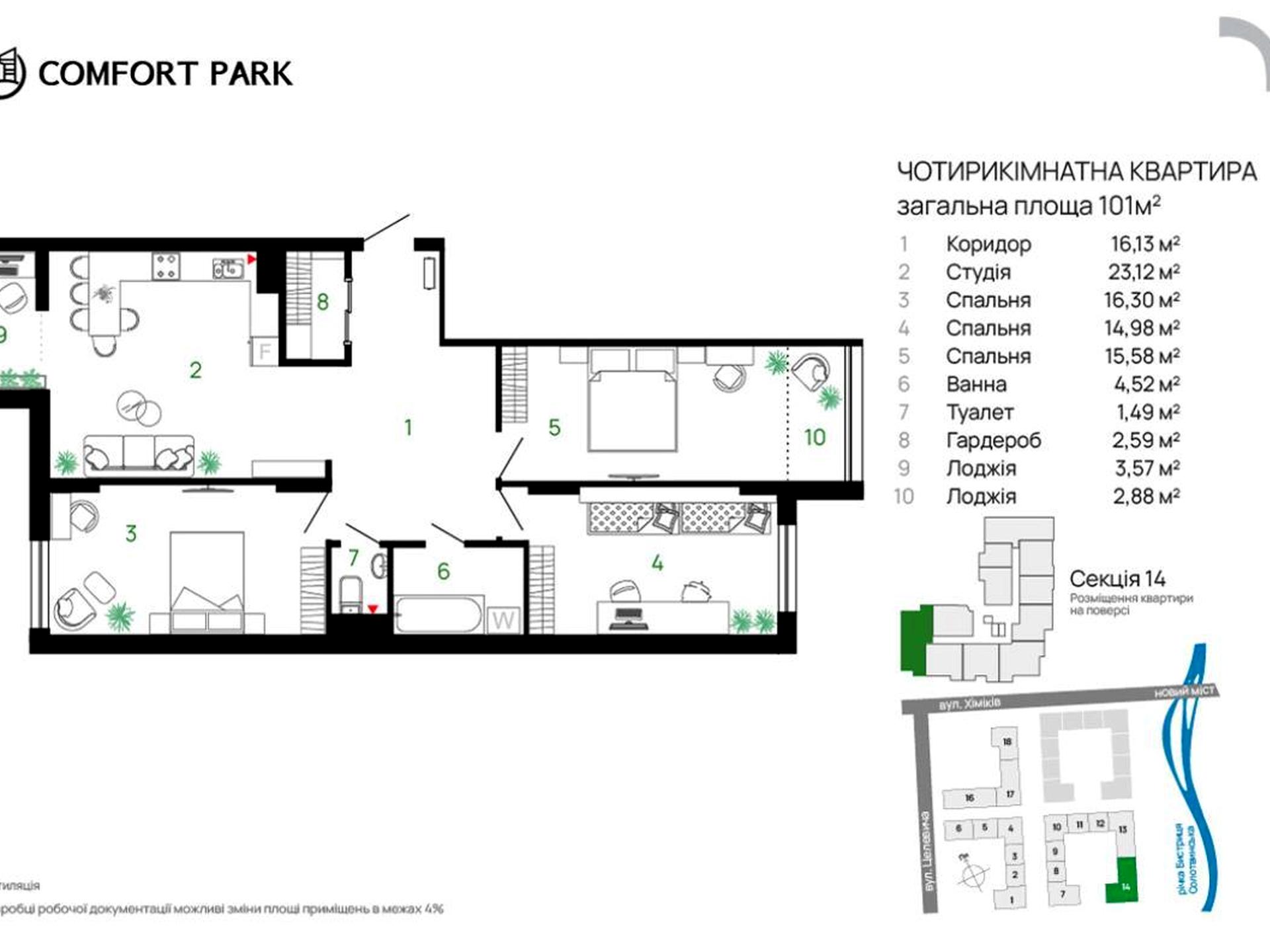 Простора 3к квартира , кухня-студія та 3 окремі кімнати у ЖК Комфорт Парк