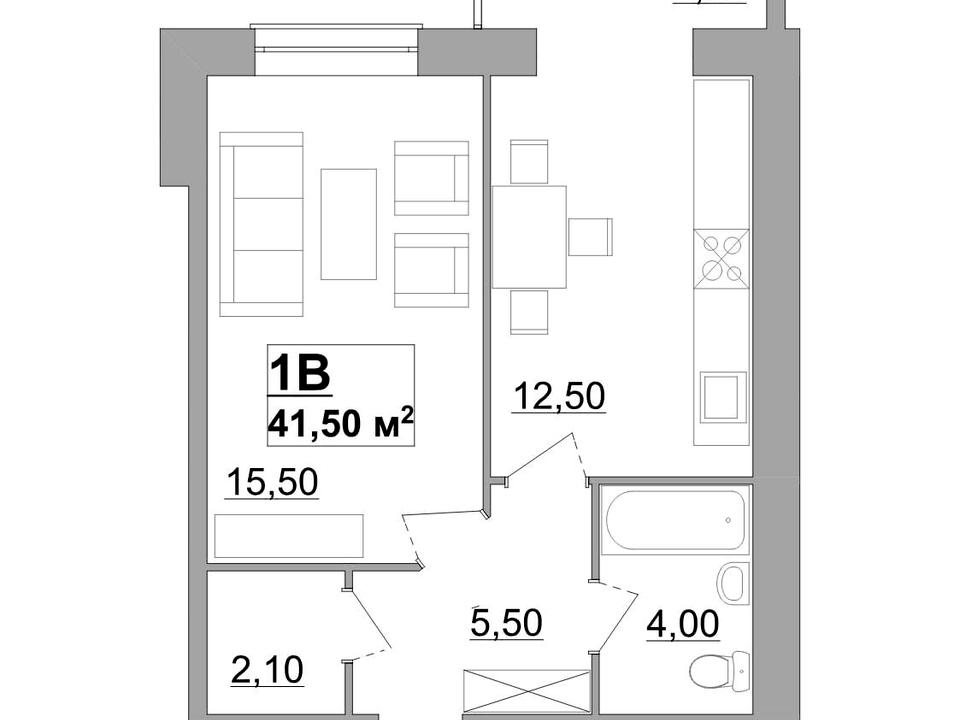 - Загальна площа 41.50 м²