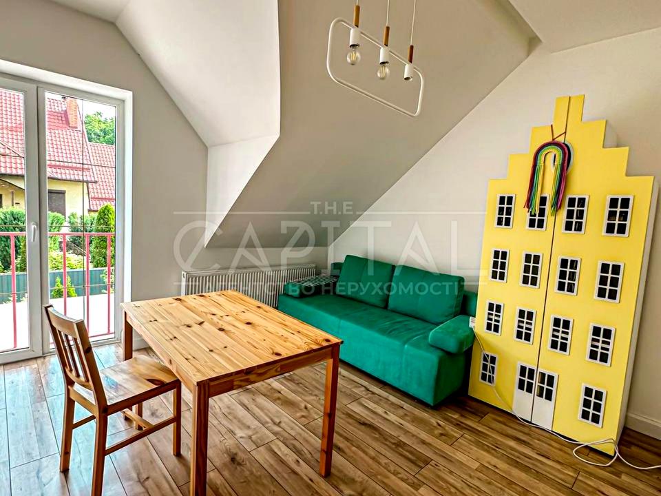 На першому поверсі розташовані коридор, кухня, вітальня, санвузол з душовою кабіною, та невелика кімната, яку можна використовувати як кабінет або гардероб. Ідеальна дитяча кімната з гіркою розташована між першим та другим поверхами.